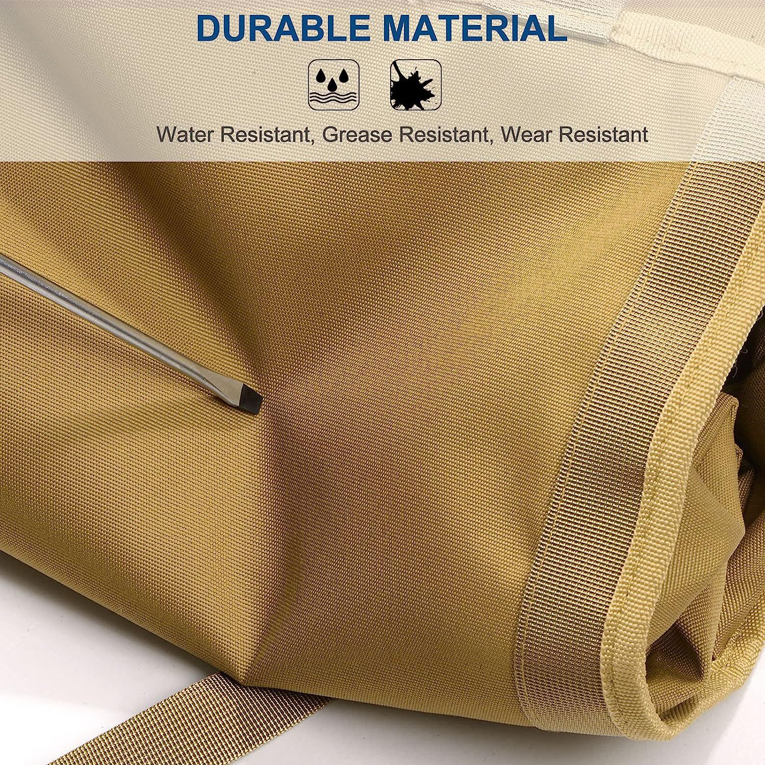Khaki Portable Roll-Up Tool Organizer with Zippered Pockets
