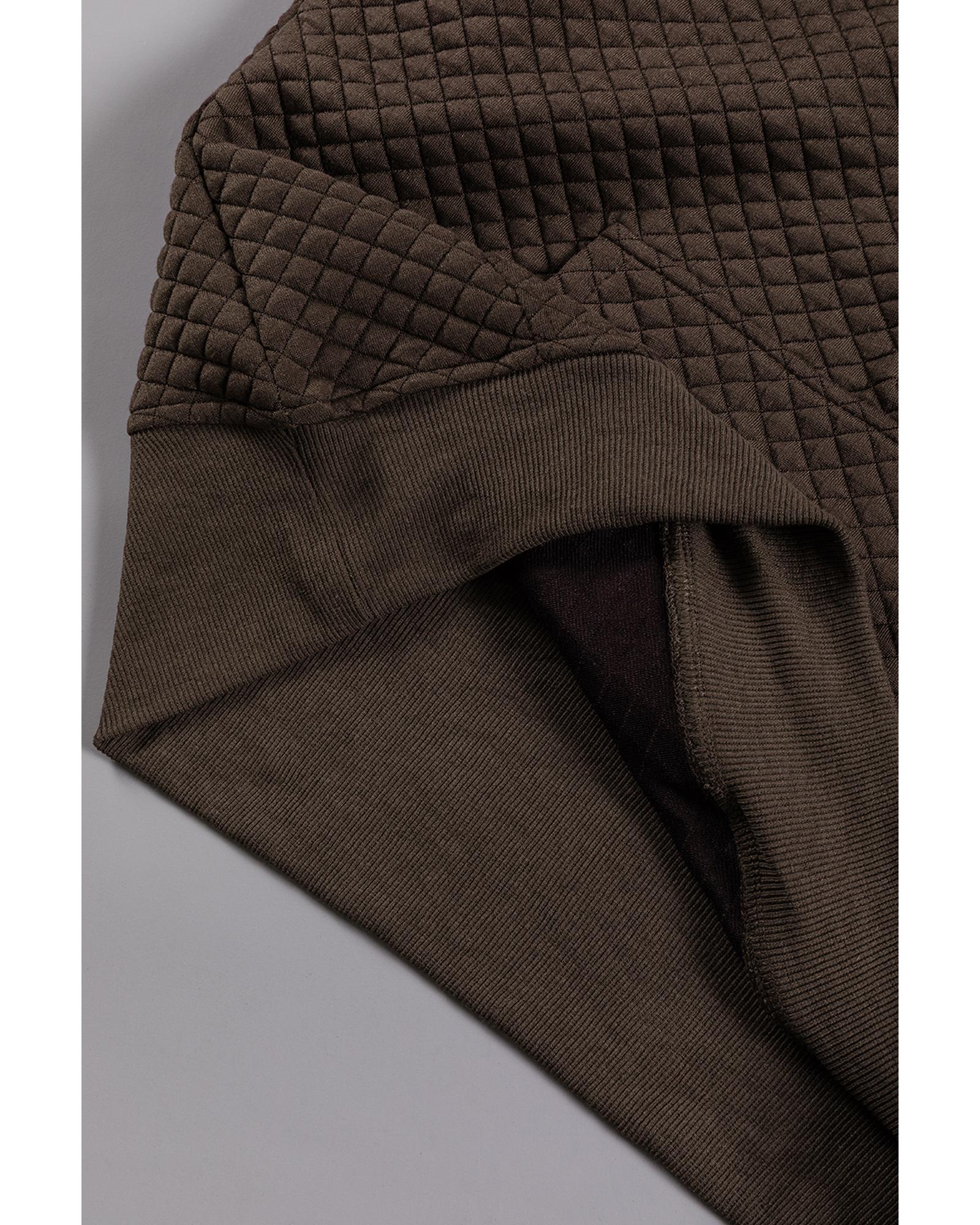 Khaki Printed Plaid Sleeve Patchwork Collared Textured Sweatshirt – L