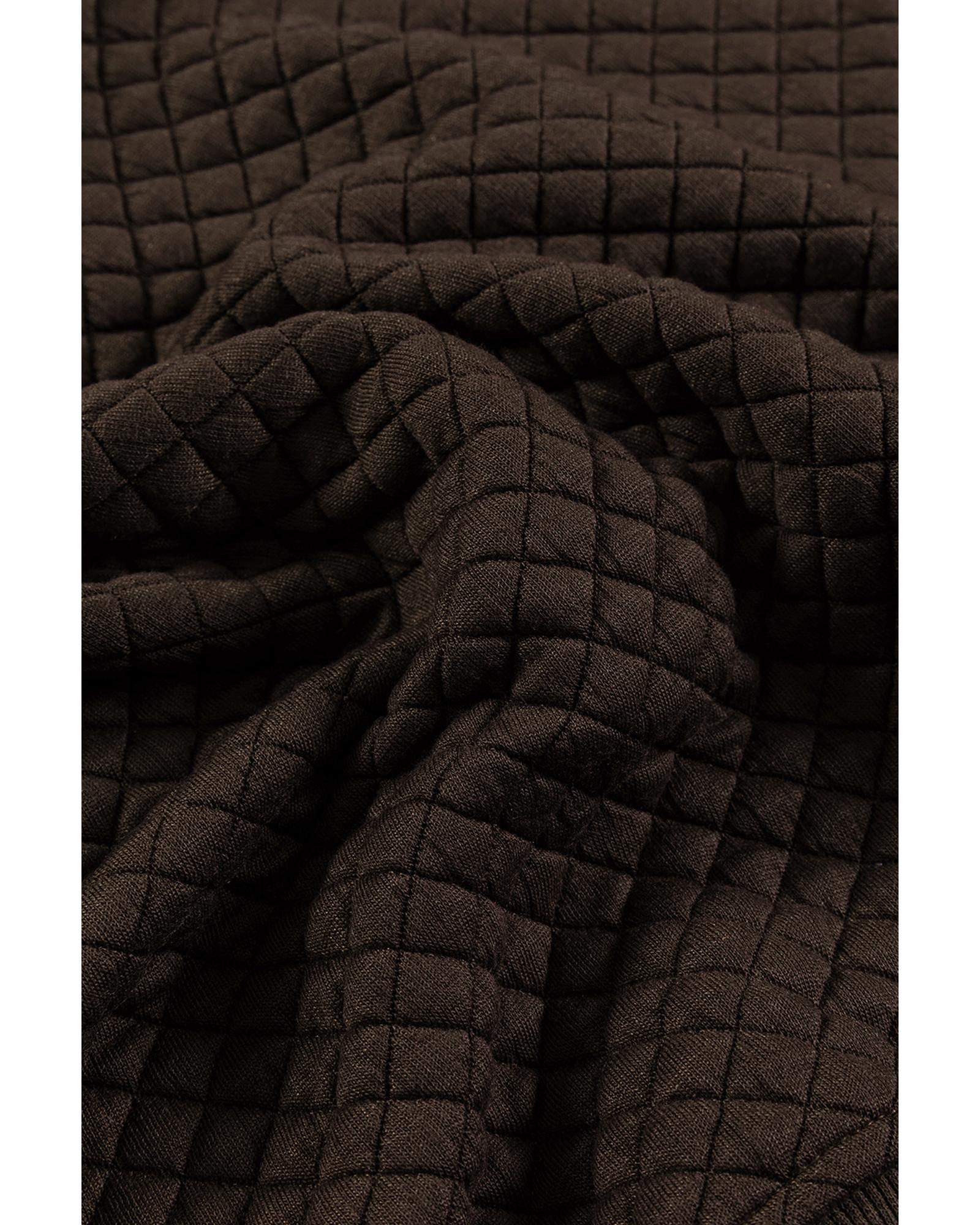 This sweatshirt features a trendy fitted design with a textured fabric and stylish plaid patchwork details. It is suitable for casual wear and can be paired easily with jeans, joggers, or sweatpants for a comfortable and fashionable look.