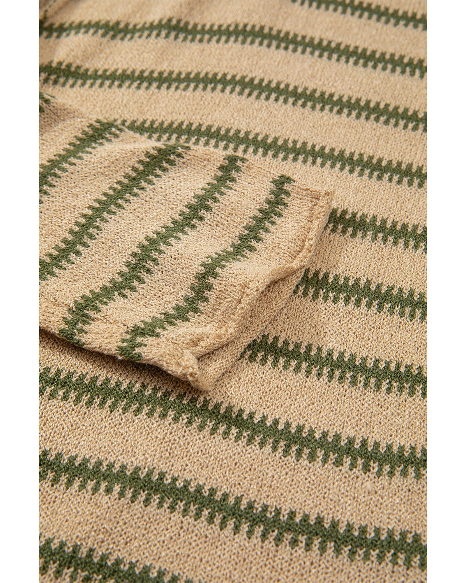 Khaki Stripe Drop Shoulder Casual Sweater – M