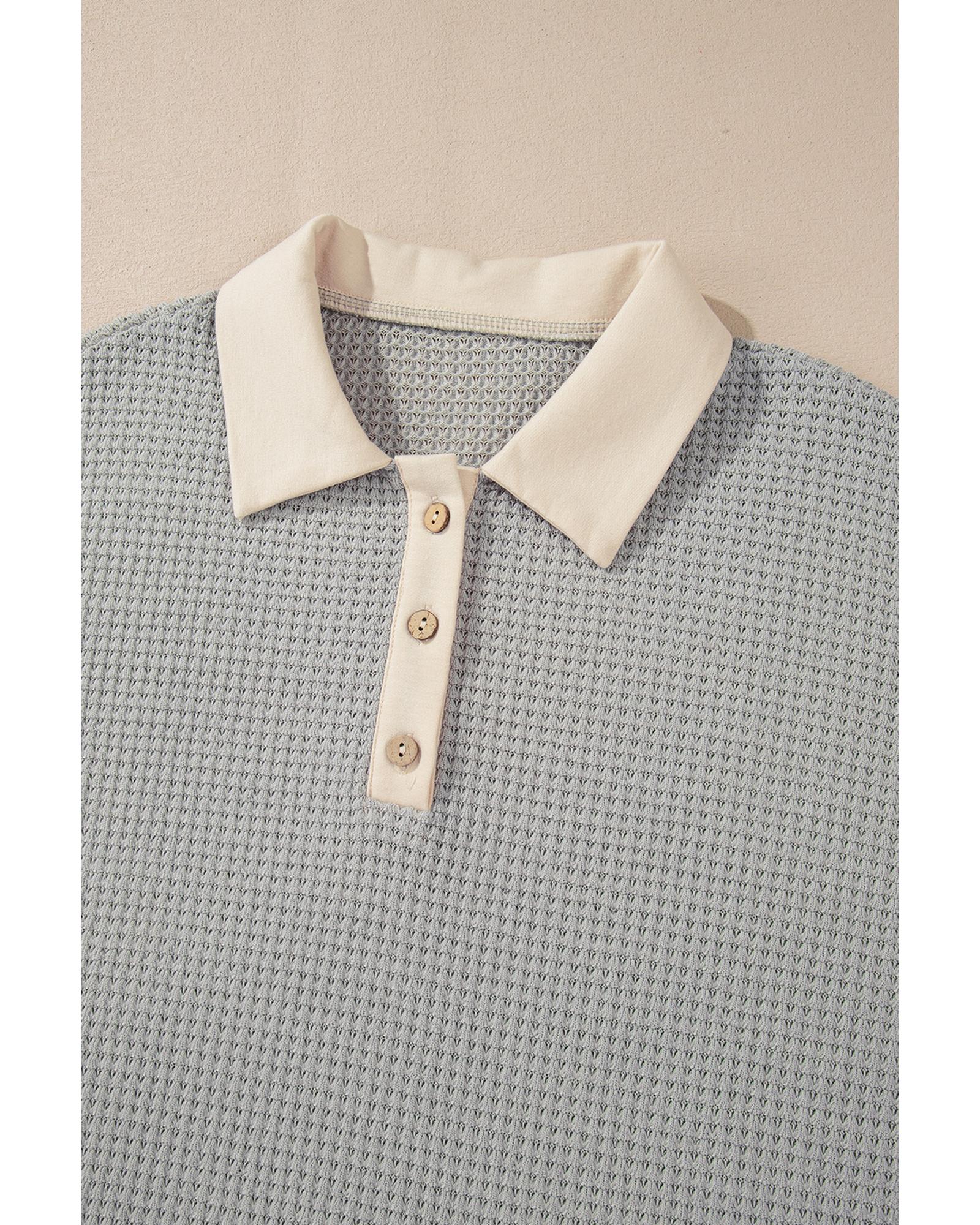This textured colorblock collared Henley top offers a stylish and versatile addition to your wardrobe. Designed with a trendy fitted silhouette, it combines comfort and fashion effortlessly, making it suitable for various occasions.