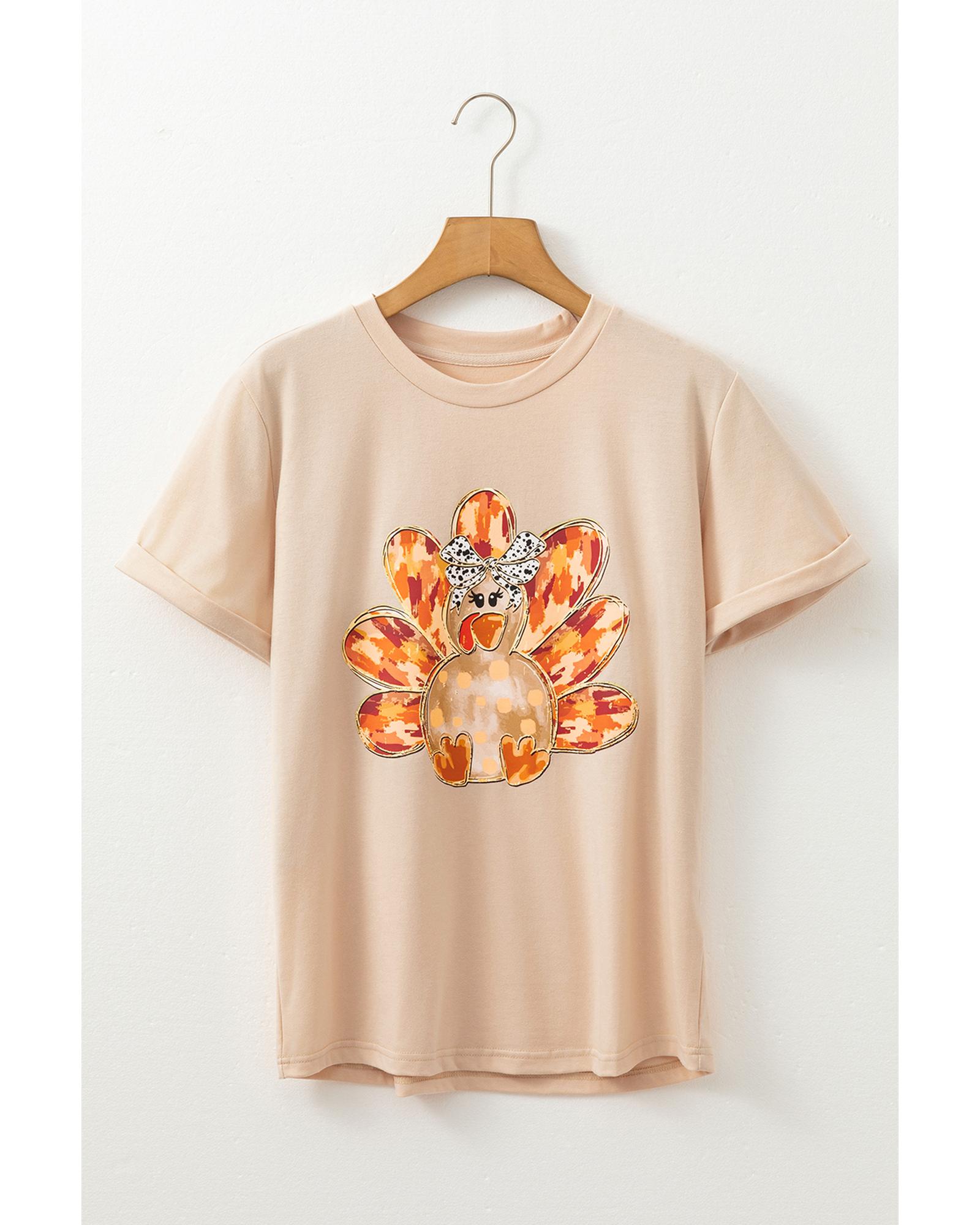 Khaki Thanksgiving Bowknot Turkey Graphic Crewneck Tee – XL