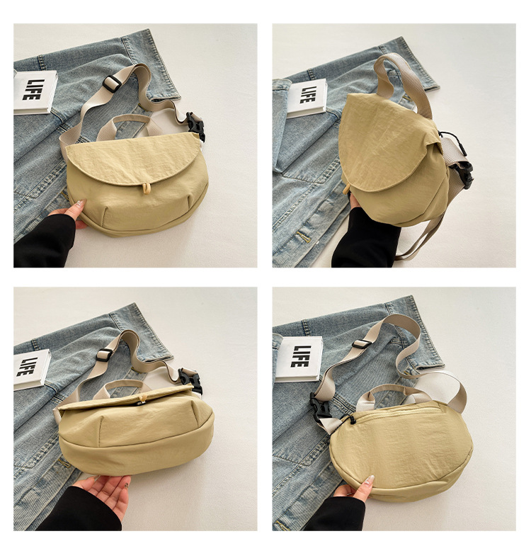 Enhance your accessory collection with this trendy crescent-shaped crossbody bag. Designed for both style and practicality, it features a lightweight and durable fabric construction, making it suitable for everyday use. The adjustable strap allows for a comfortable fit, whether worn as a crossbody or shoulder bag. Its minimalist design and variety of colors make it a versatile addition to any outfit.