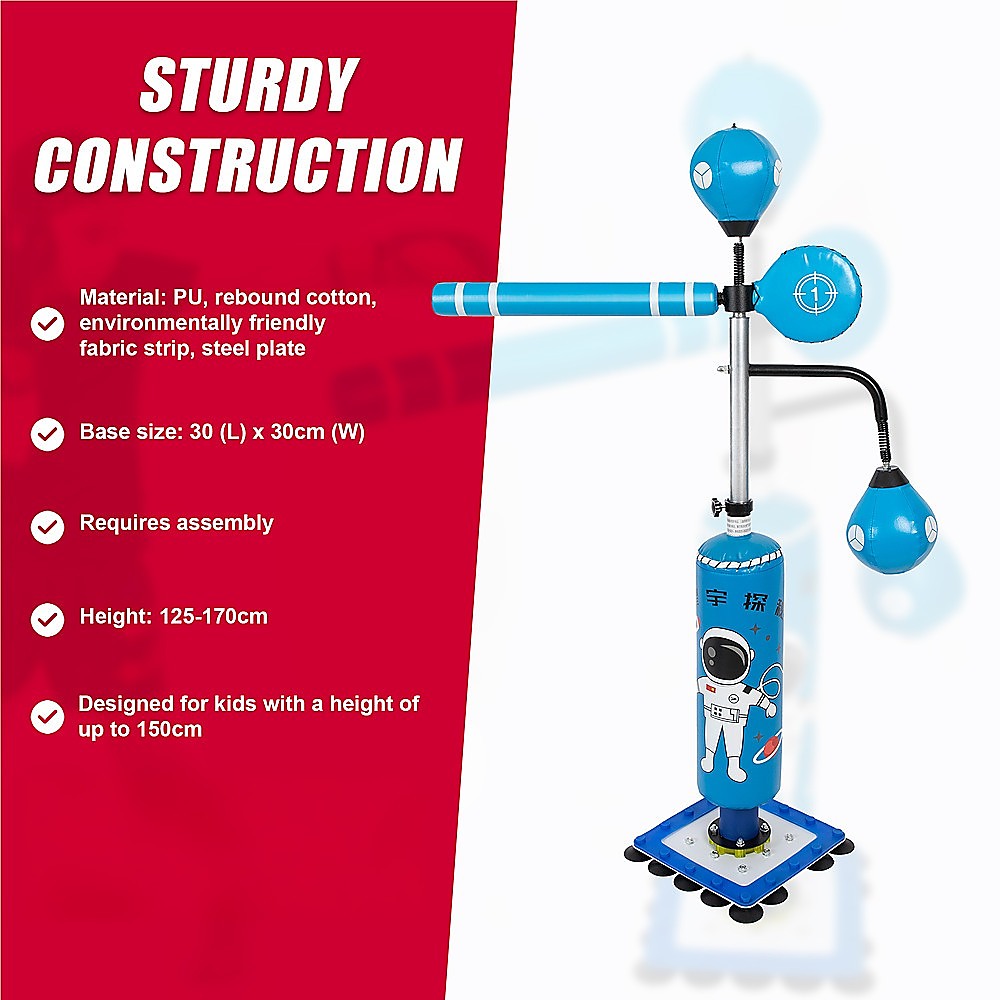This kids boxing punching bag is designed to enhance children’s physical strength, endurance, and coordination through engaging boxing training. It is suitable for children with a height of up to 150cm and features a secure suction cup system for stable placement on smooth, flat surfaces.