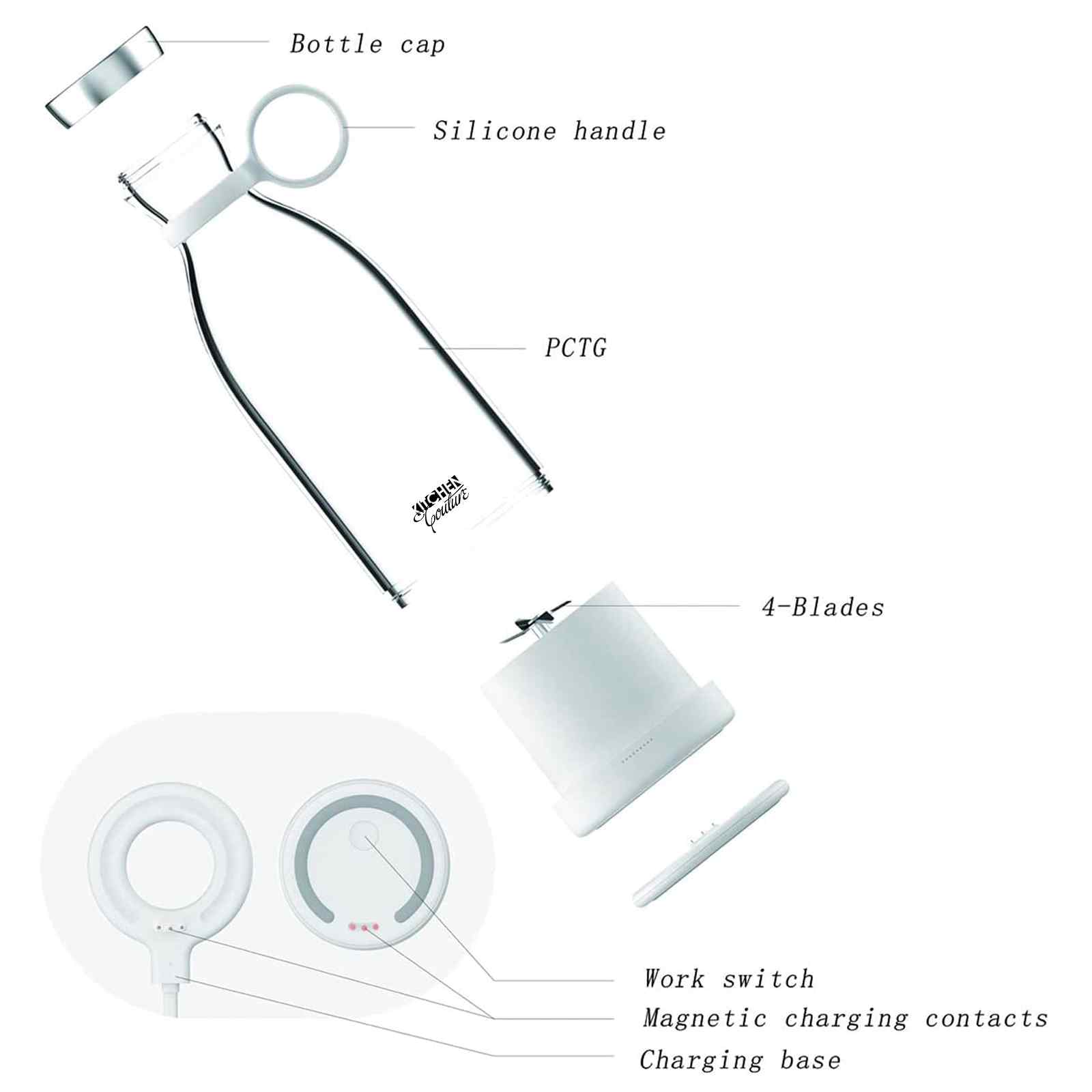 • Equipped with four food-grade stainless steel blades for efficient blending