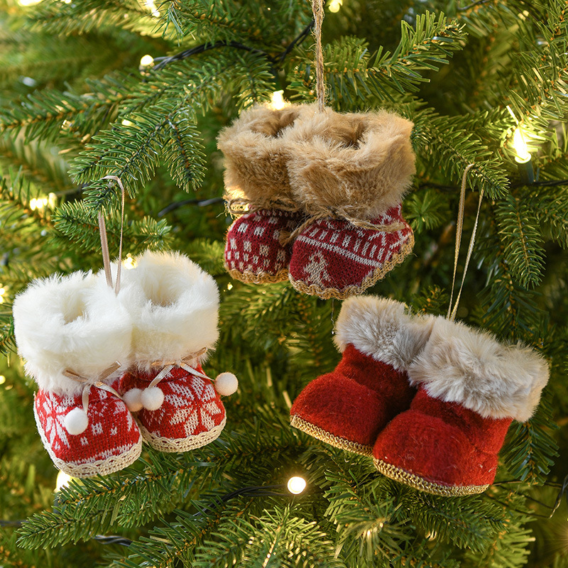 This set of knitted Christmas boot ornaments features cozy patterns and faux fur trim, making them ideal for holiday decorating. They add a warm and festive touch to Christmas trees, mantles, or holiday displays.