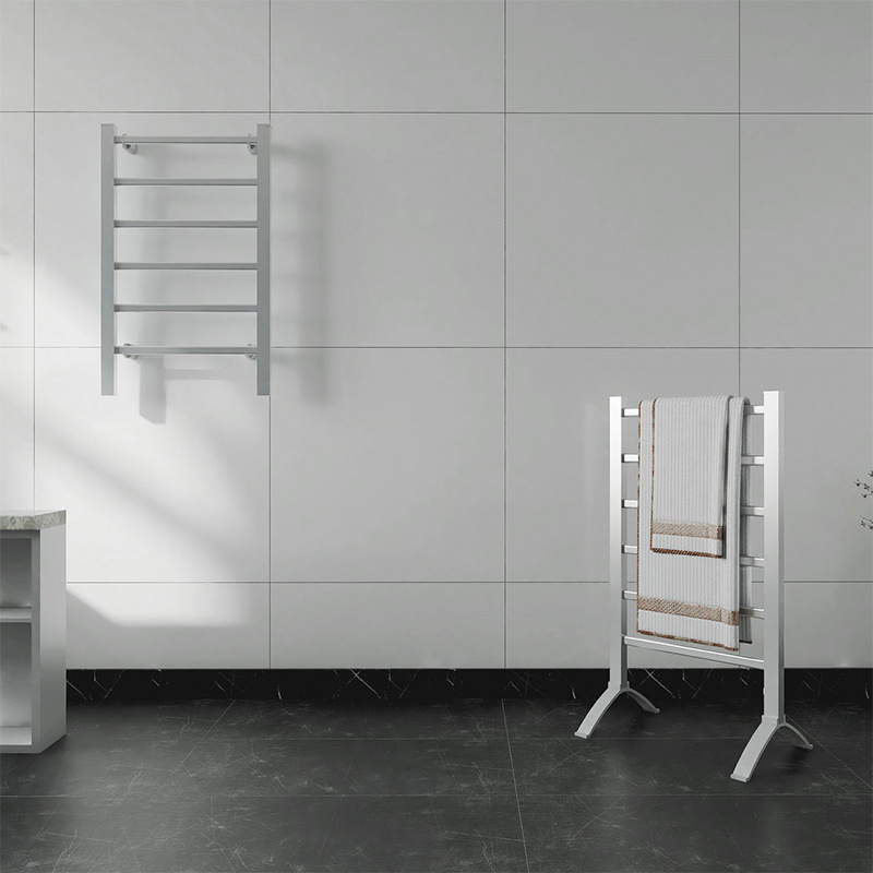 The electric towel warmer is designed to quickly heat towels, clothing, or other items, providing warmth and dryness. It offers versatile installation options, functioning as a free-standing unit or wall-mounted, with easy setup and operation. Made from anti-corrosion aluminum, it features a water-resistant switch suitable for bathroom use. The device maintains a constant temperature to ensure comfort and safety during use.
