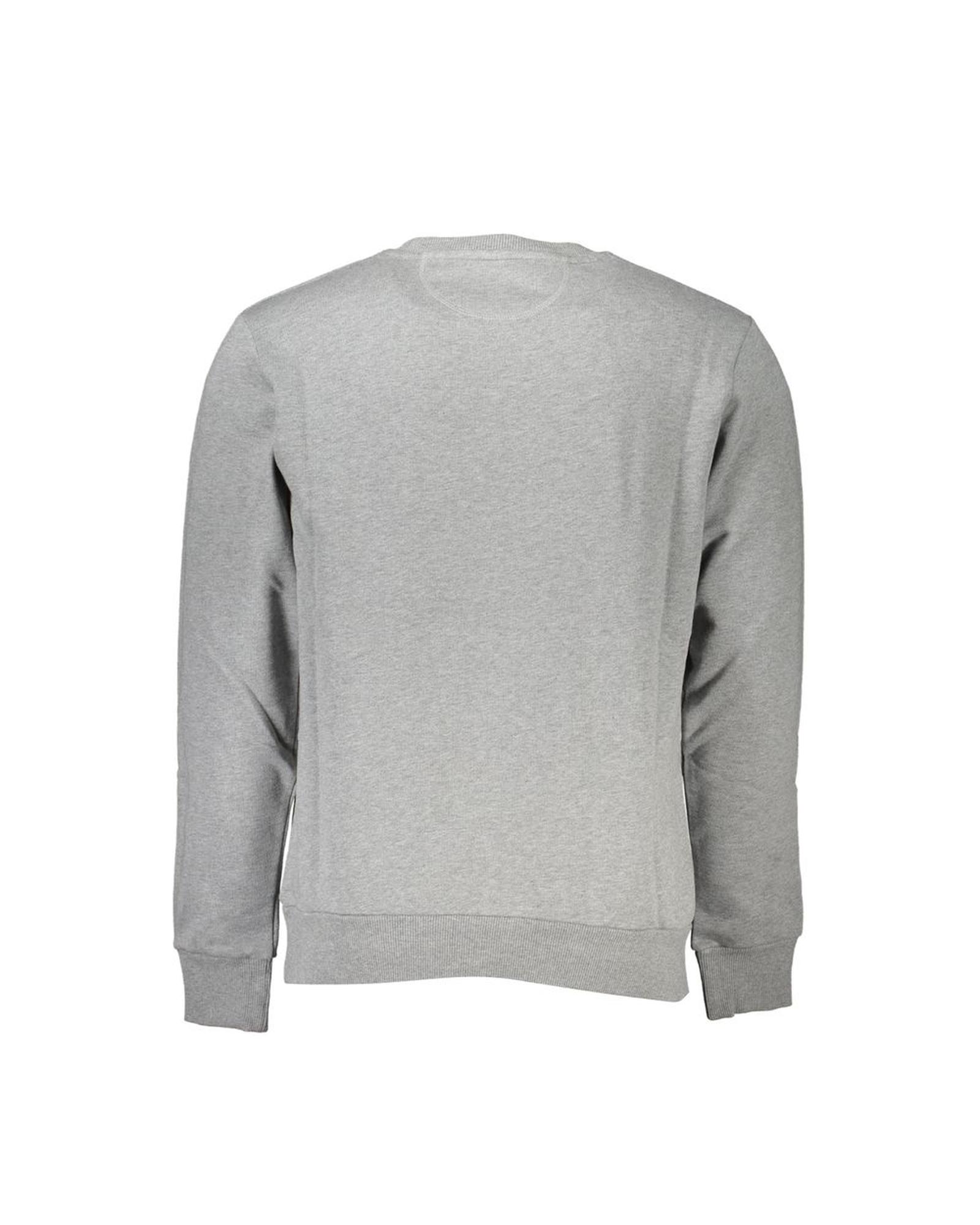 This men’s gray cotton sweater offers a comfortable and stylish option for everyday wear. Crafted from fleece material, it features a classic crew neck and long sleeves, making it suitable for various casual occasions. The sweater is designed with embroidery detailing and a logo on the front, adding a touch of distinctive style. Its regular fit ensures comfort and versatility for different body types.