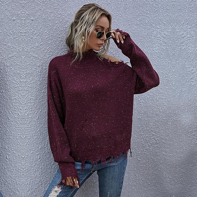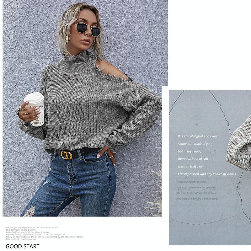 - 1 x ladies loose off shoulder ripped long-sleeved turtleneck autumn knitted sweater