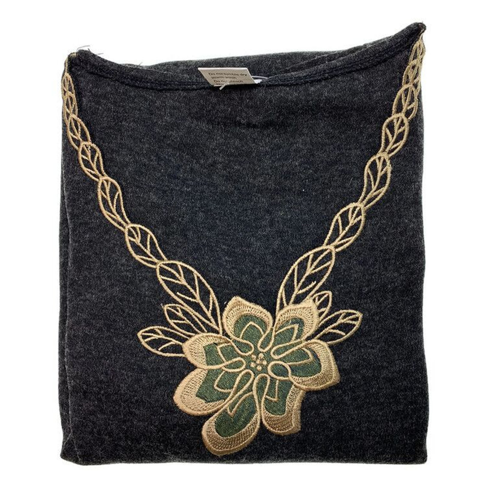 This thermal long sleeve spencer top is designed to provide warmth and comfort during colder months. It features a classic v-neck style with elegant floral embroidery, making it a versatile addition to your winter wardrobe.