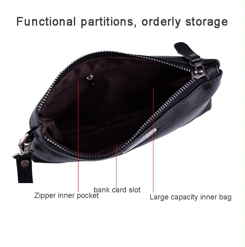 This large capacity casual clutch wallet features a zipper closure and a sleek design, providing ample organized storage space for your essentials. Crafted from durable and soft PU leather, it combines style with practicality. The wallet includes a humanized anti-theft wrist strap made of wear-resistant microfiber for added comfort and convenience.