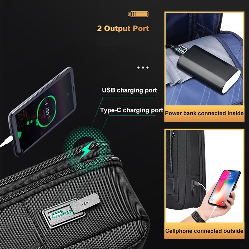 Package includes one large capacity cowhide laptop backpack with USB and Type-C ports in a high-end version.