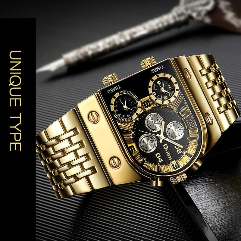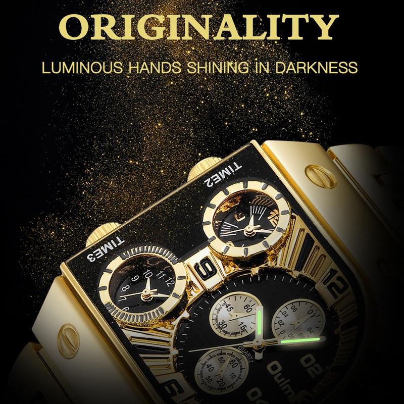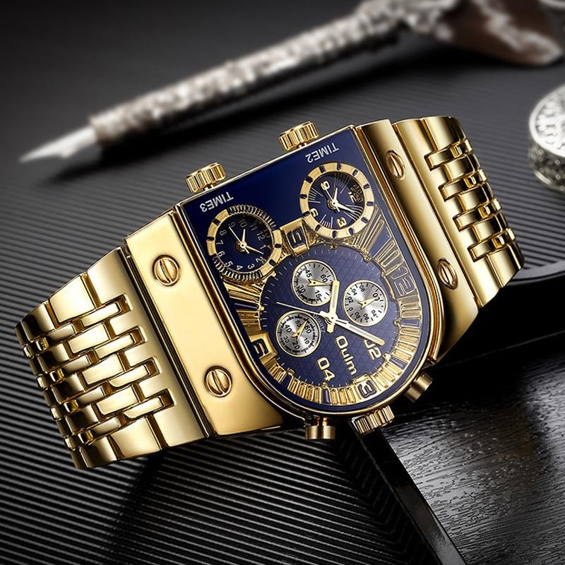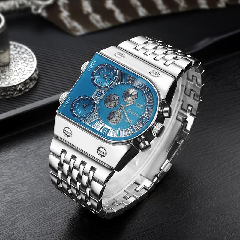 This large dial multi-time zone men’s quartz watch features a luminous steel strap and a decorative design with 24-hour indication and three time zones. It combines precise timekeeping with a stylish appearance suitable for daily wear.