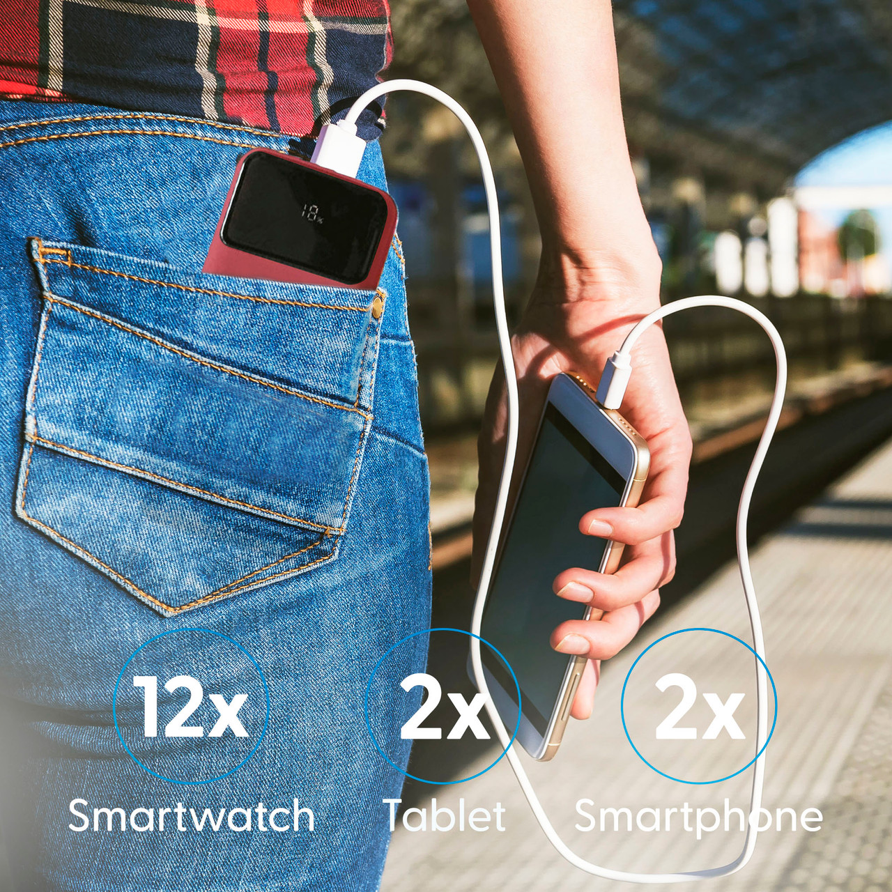 - 10,000mAh capacity allows for multiple charges of smartphones, smartwatches, or tablets, making it suitable for extended use away from power sources.
