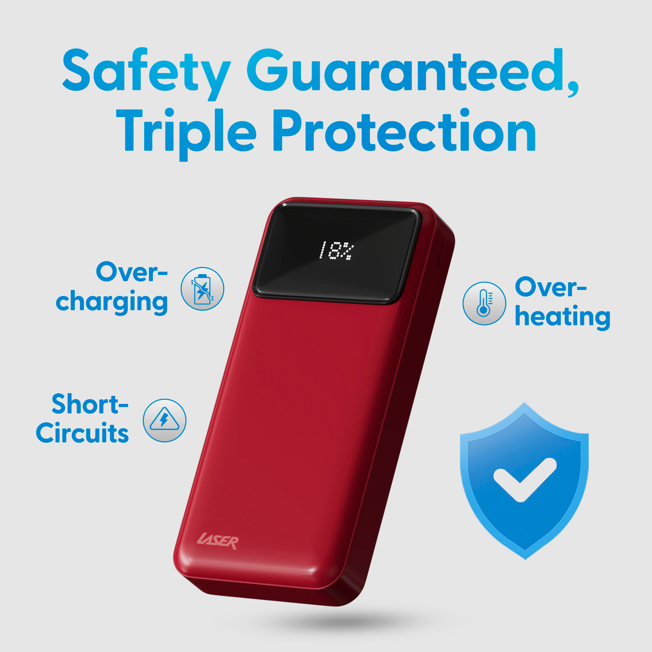 Laser 20000mAh Powerbank 18W PD with LED Red