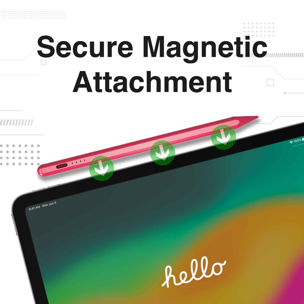 The stylus features a lightweight, pen-like feel, making it ideal for drawing, writing, or note-taking directly on your iPad. It activates with a simple press of a button, providing an intuitive user experience. The ultra-precise nib ensures pixel-perfect lines, with options to replace the nib as needed. The magnetic design allows the stylus to attach securely to the side of compatible iPads, enhancing portability and organization.