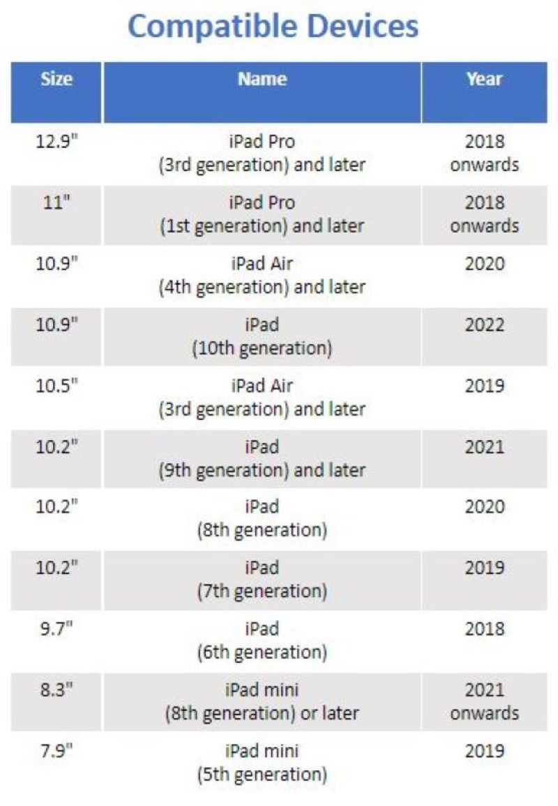• Compatible with iPad models 6/7/8/9/10, iPad Air 3/4/5, iPad Mini 5/6, and iPad Pro 12.9/11 inch (2018-2022)