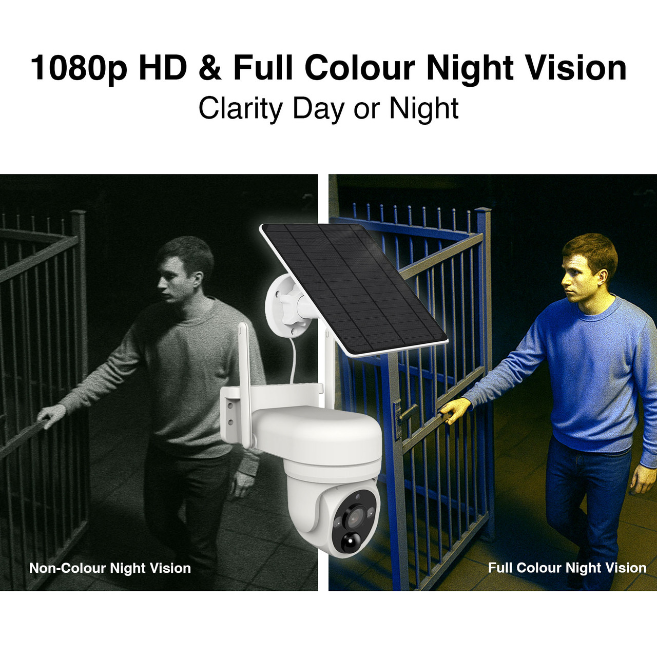 This outdoor pan and tilt camera offers comprehensive 360-degree surveillance with high-definition video quality. It features smart motion detection, two-way audio, and night vision capabilities, making it suitable for monitoring various outdoor areas. Powered by solar energy, it provides a sustainable and wire-free security solution that can be controlled remotely via a dedicated app.