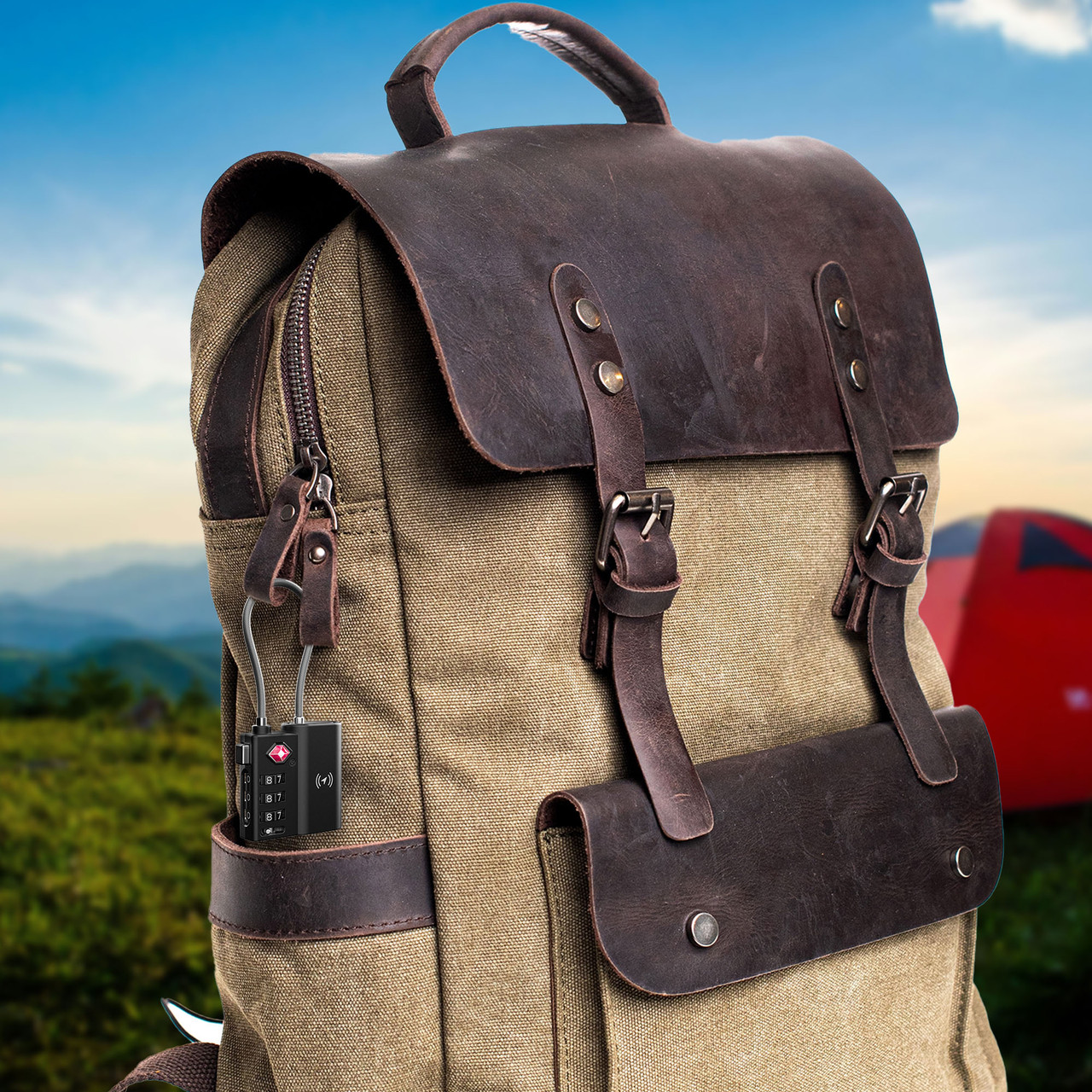 This product is a smart luggage tag equipped with a laser TSA combination lock and a rechargeable battery. It allows users to secure their belongings while enabling easy tracking and location services through a compatible app on their mobile device.