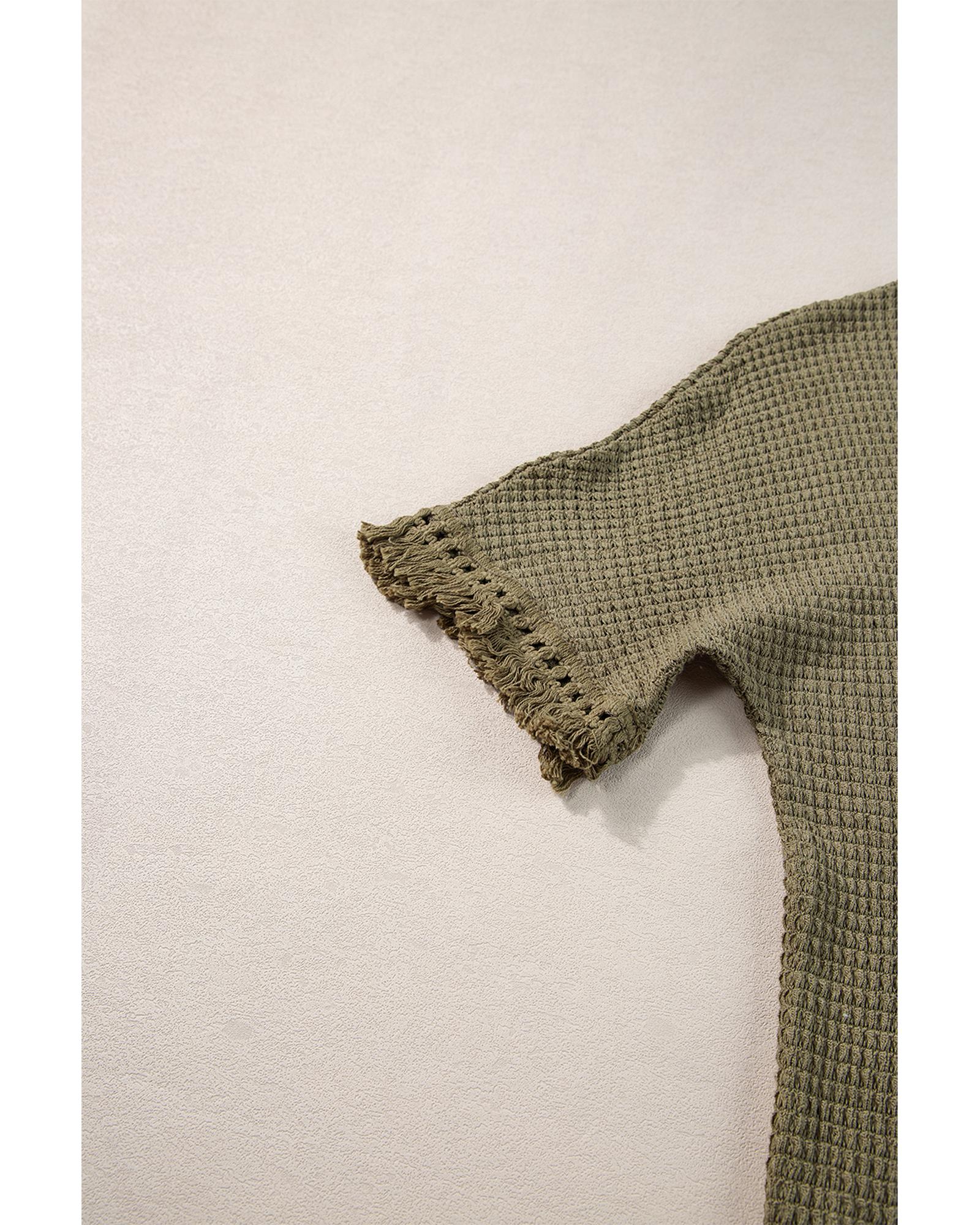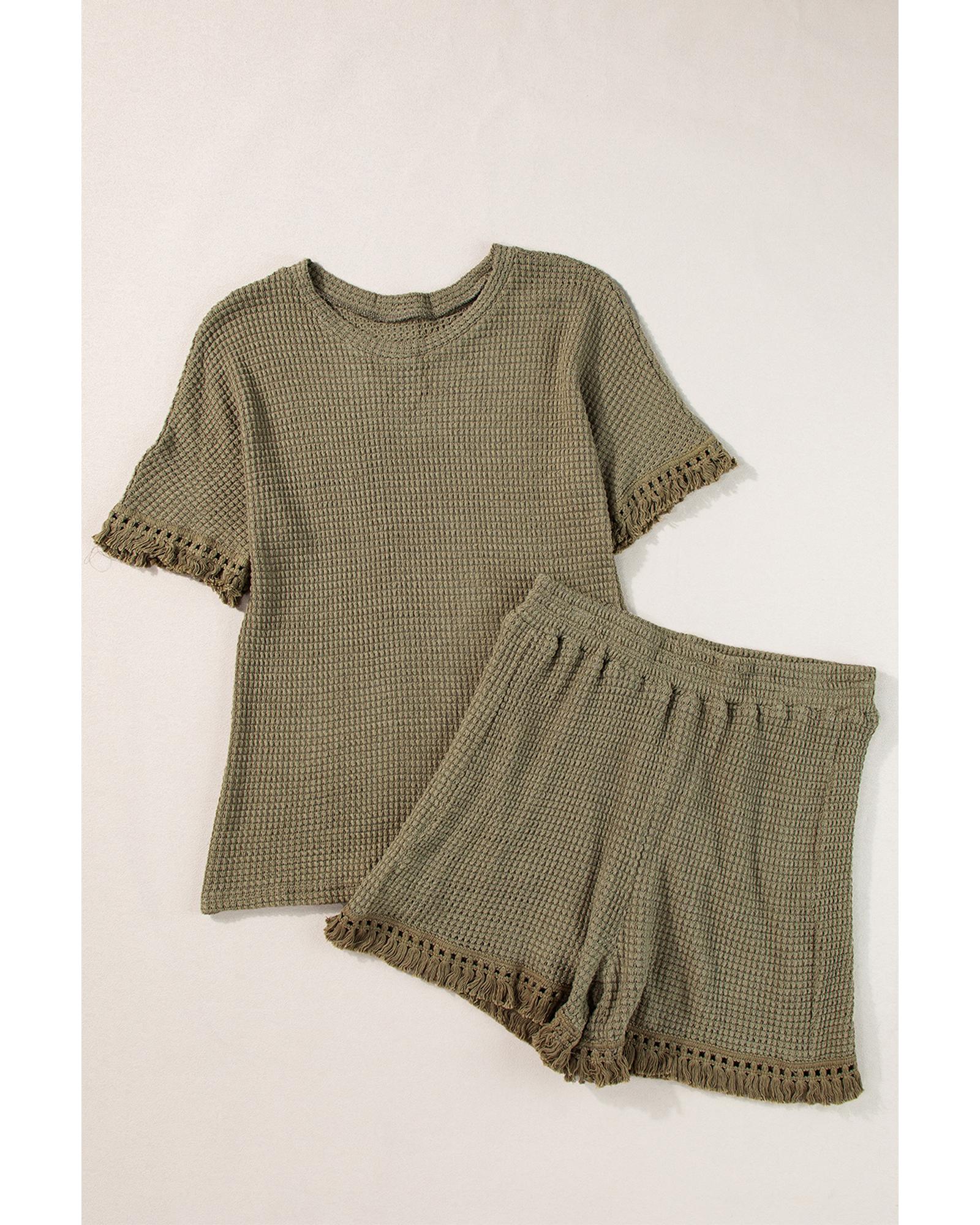 Laurel Green Fringe Trim Textured Short Two Piece Set – L