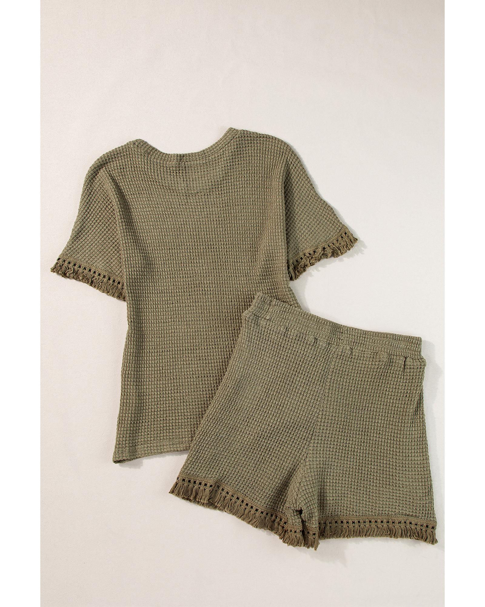 Laurel Green Fringe Trim Textured Short Two Piece Set – S