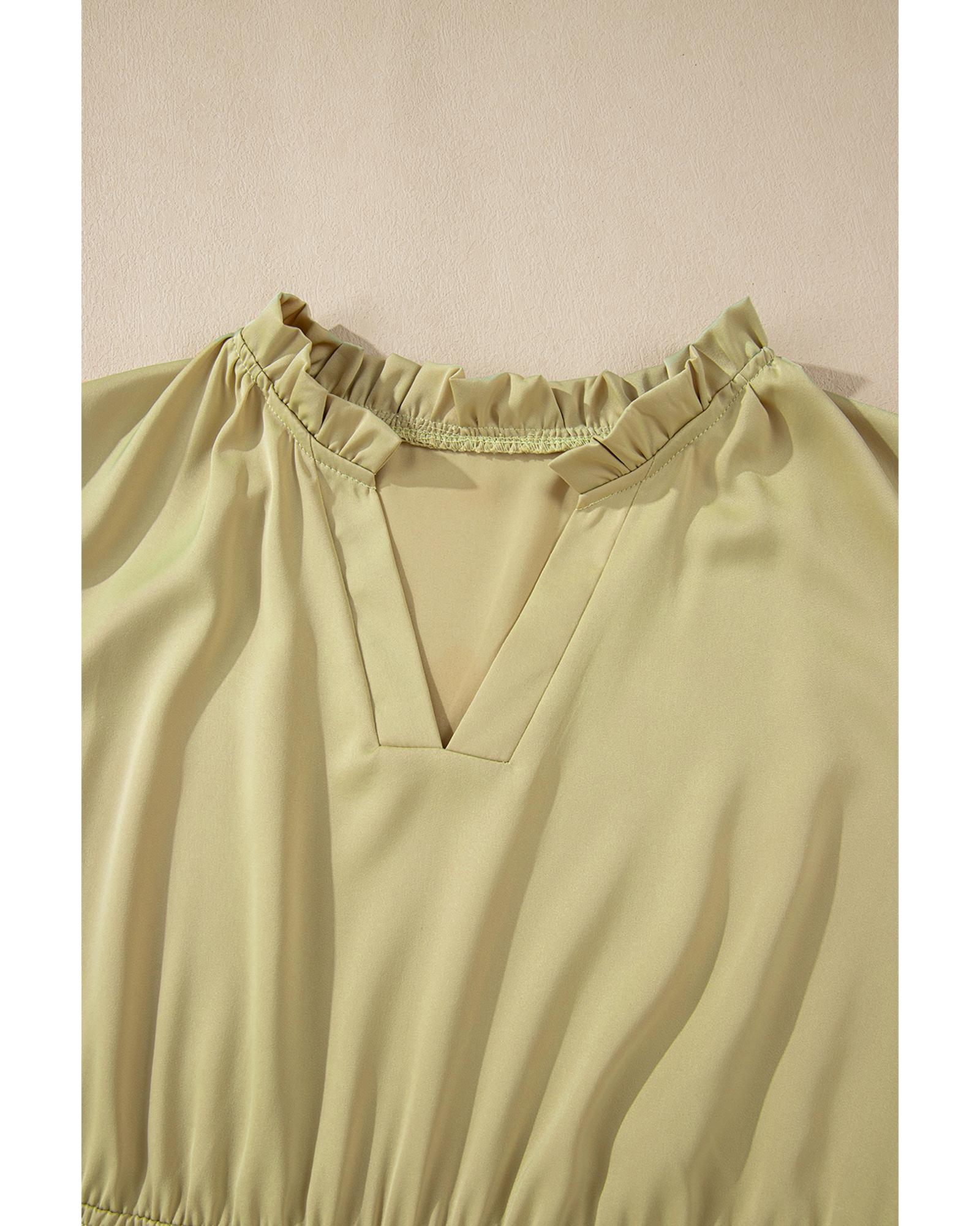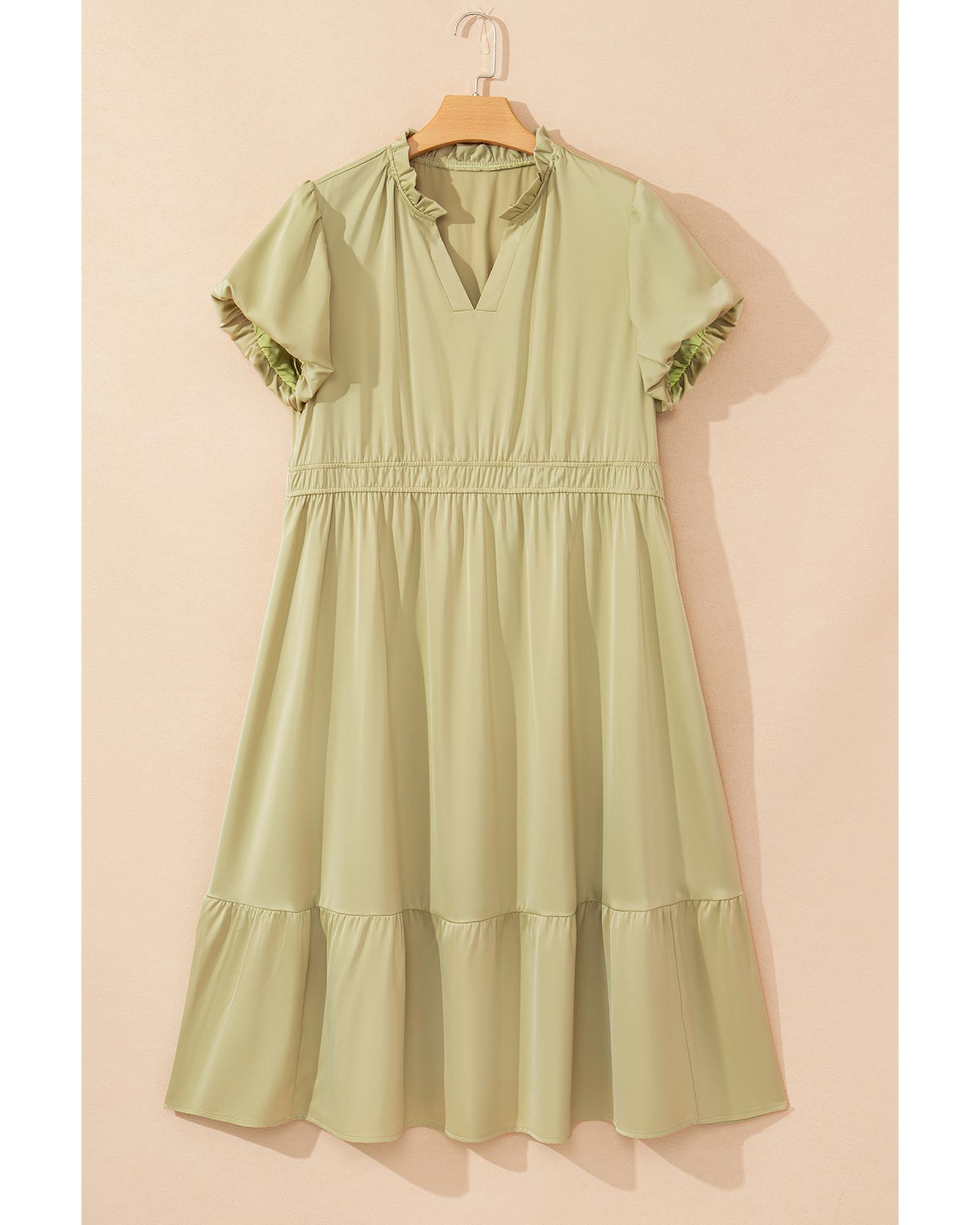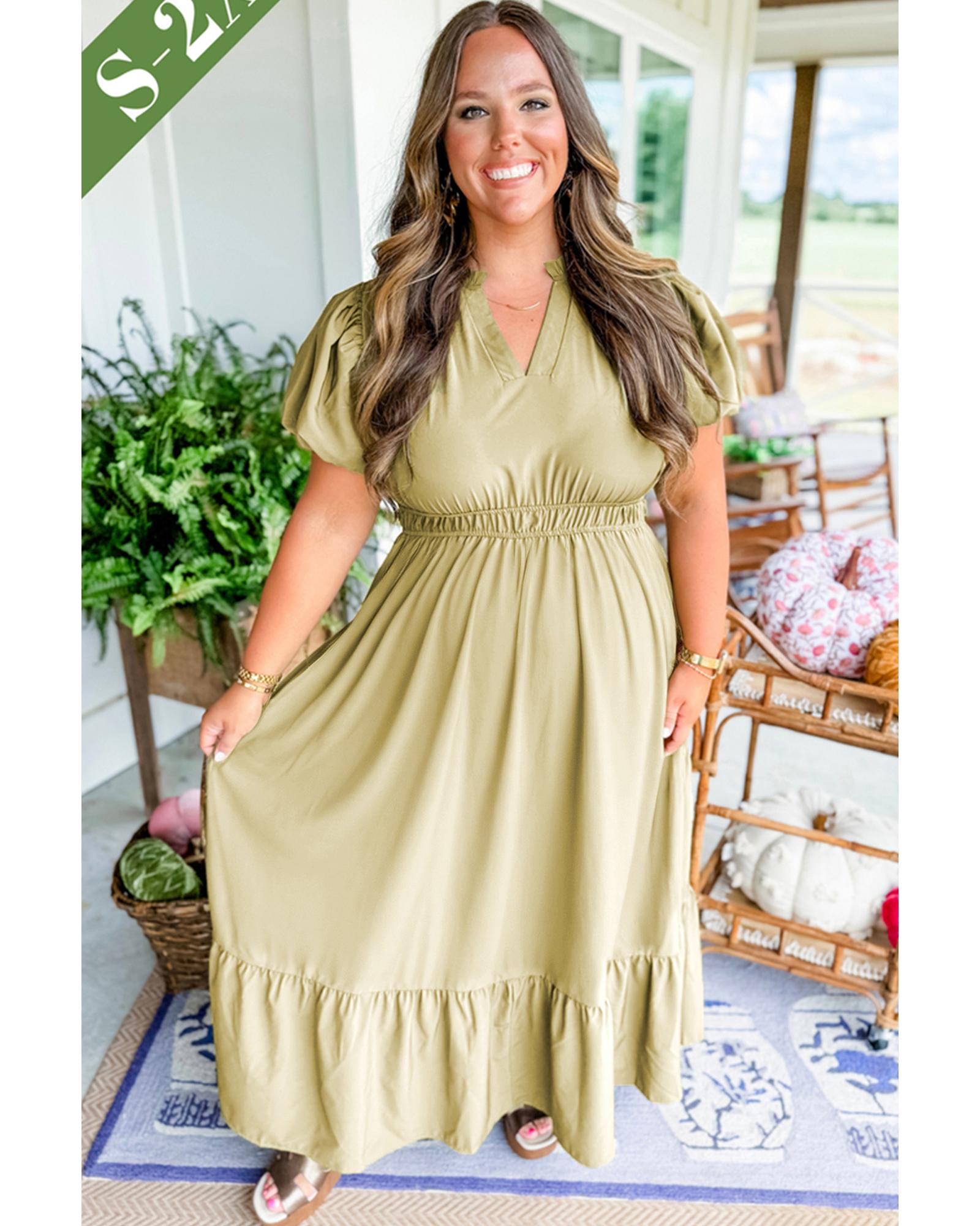 Laurel Green Notched V Neck Puff Sleeve Tiered Plus Size Maxi Dress – 4X