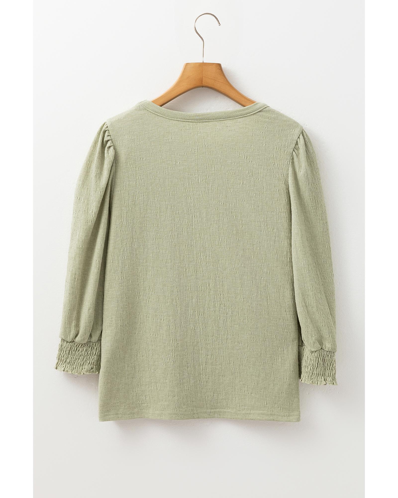 Laurel Green Textured Round Neck Half Sleeve Blouse – L
