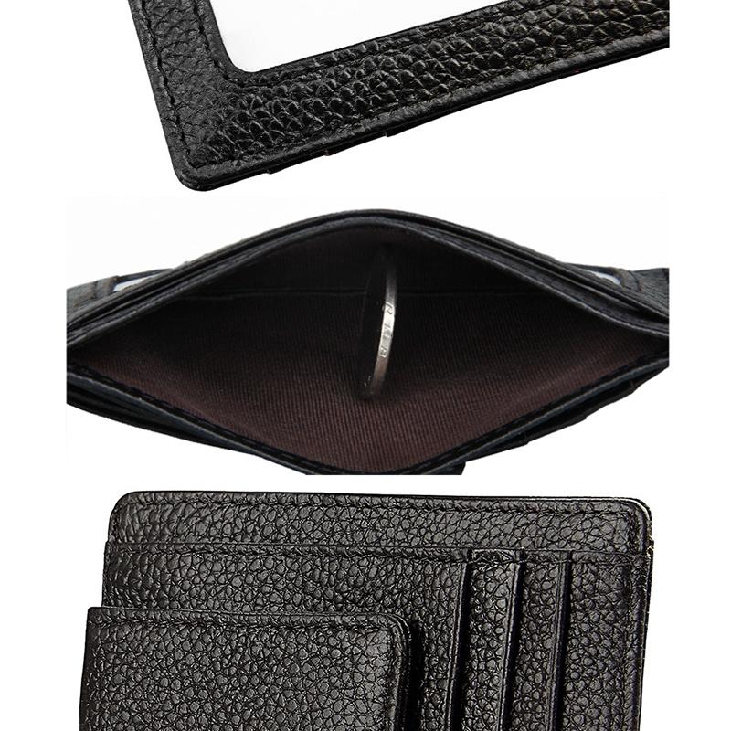 This RFID blocking card holder wallet is designed to meet your daily needs, offering ample space for cards, cash, and coins. Made from high-quality cowhide leather, it combines durability with ease of use. The wide opening allows for simple insertion of cards, while an electromagnetically opaque shield provides protection against high-tech pickpocketing and unauthorized electronic scanning devices. It is ideal for safeguarding personal information during shopping trips and travel abroad.