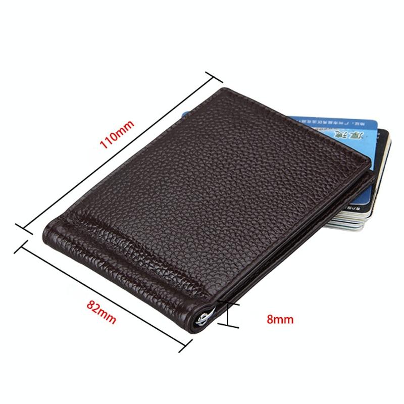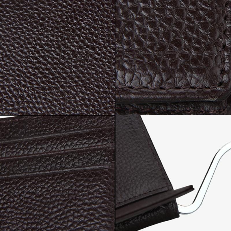 This leather RFID card holder wallet is designed to meet your daily needs, offering ample space for cards, cash, and coins. Made from high-quality cowhide leather, it combines durability with ease of use. The wide opening allows for simple insertion of cards, and an electromagnetically opaque shield provides protection against high-tech pickpocketing and unauthorized electronic scanning. It is ideal for safeguarding personal information during shopping and travel abroad.