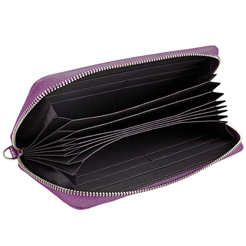Leather Rfid Card Holder Wallet with Hand Strap – Purple