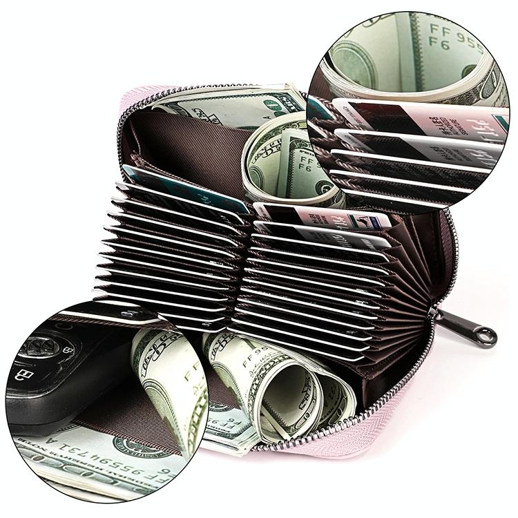 This RFID leather wallet combines sleek design with security features, making it a practical accessory for everyday use. Crafted from durable leather, it offers multiple card slots and multi-function compartments to organize your essentials efficiently. The wallet is designed with anti-magnetic RFID technology to protect your bank card information and features a metal zipper for smooth operation.