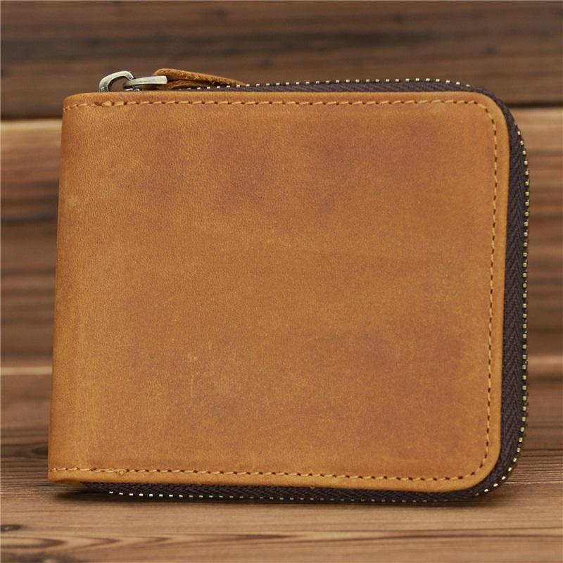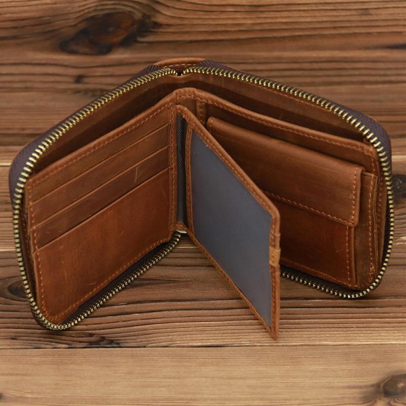 This RFID zip wallet is crafted from durable cowhide material, offering a compact and horizontal design that is both wear-resistant and spacious enough to meet daily storage needs.