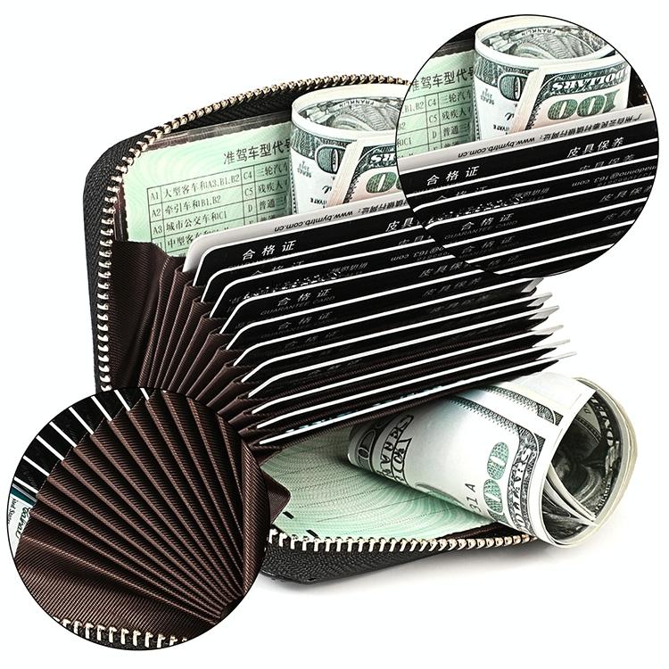 This leather wallet features RFID protection and a butterfly pattern, combining style with security. It offers multiple card slots and an easy-access organ shape design, making it practical for everyday use. Crafted from durable leather, it provides comfort and resistance to deformation, with a smooth metal zipper for secure closure.