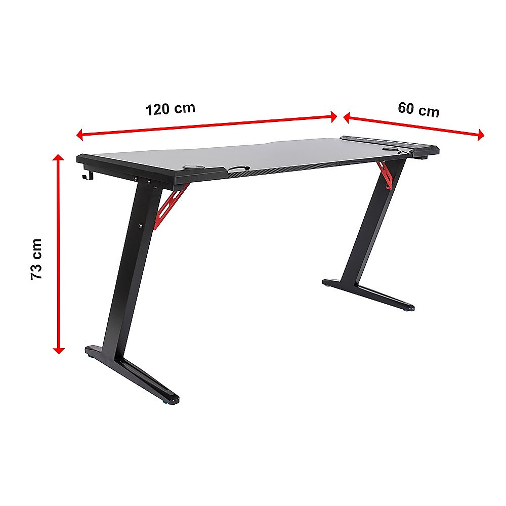 This LED gaming desk is designed to enhance your gaming and work setup with a spacious surface and functional features. It combines sturdy construction with a sleek, ergonomic design, making it suitable for various activities such as gaming, studying, or working. The desk includes built-in accessories to optimize space and improve convenience, creating an efficient and comfortable environment.