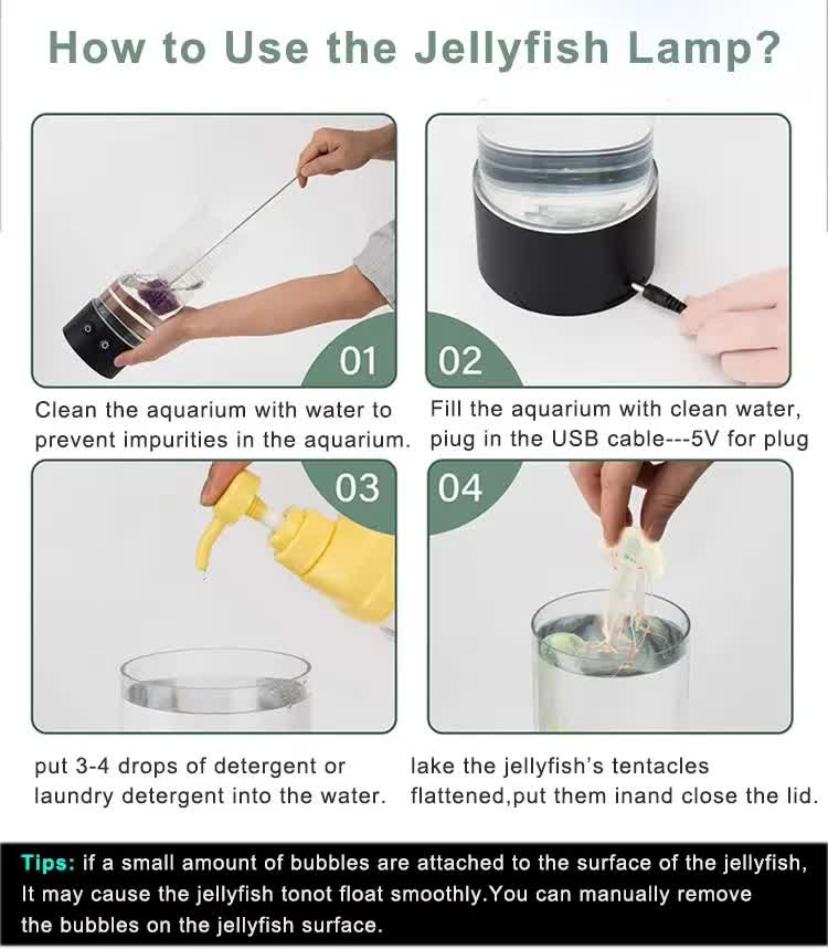 • Includes remote control, USB cable, jellyfish figure, and user manual for easy setup