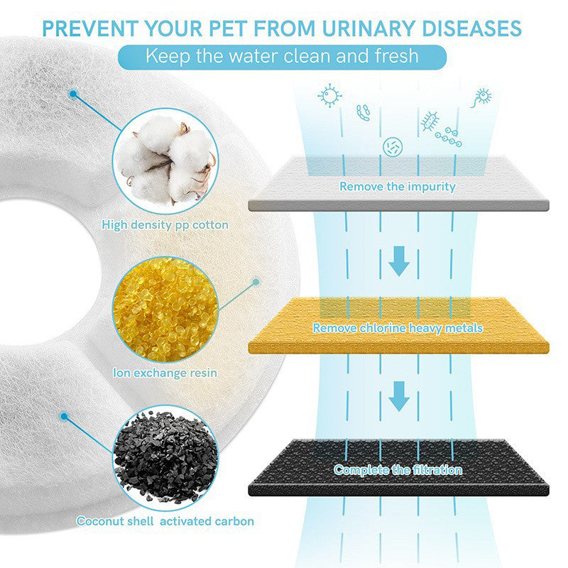 This automatic pet water fountain provides a continuous flow of clean, filtered water to keep your pets hydrated and healthy. It features a sleek stainless steel top and a BPA-free body, designed for quiet operation and easy maintenance. The fountain includes multiple flow options and a visible water level window for convenience.