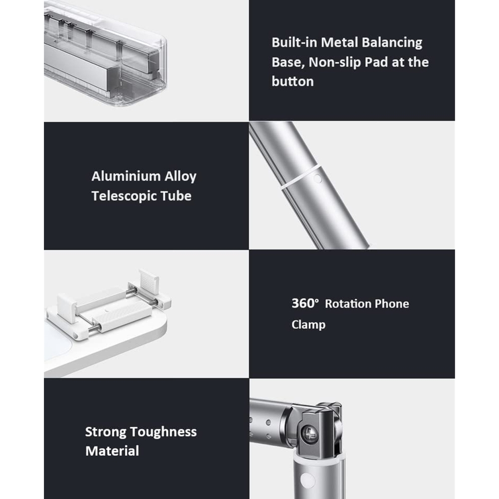 • Features: 360-degree rotating phone clamp and head, multi-angle bending, overhead shooting capability