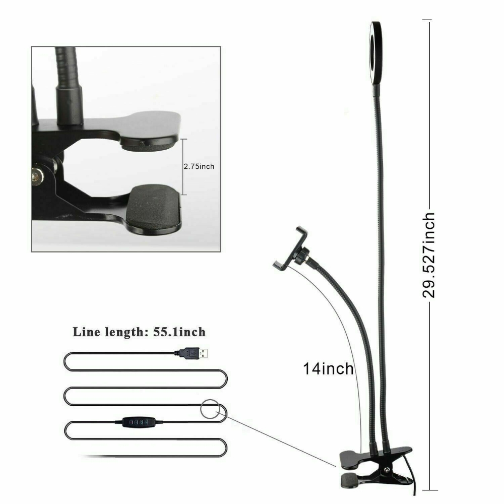LED Selfie Ring Light with Cell Phone Holder Flexible Stand Live Stream Lamp AU