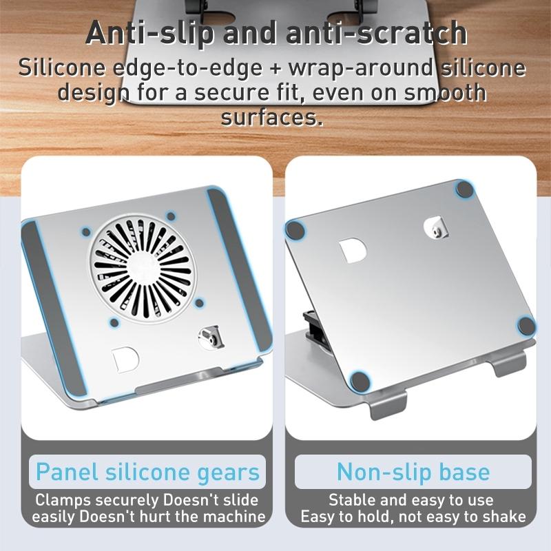 This laptop cooling stand is designed to provide a stable and adjustable platform to enhance your computing experience. Made from durable materials, it features a built-in USB fan for efficient cooling and can support substantial weight, making it suitable for various laptop sizes and workloads.