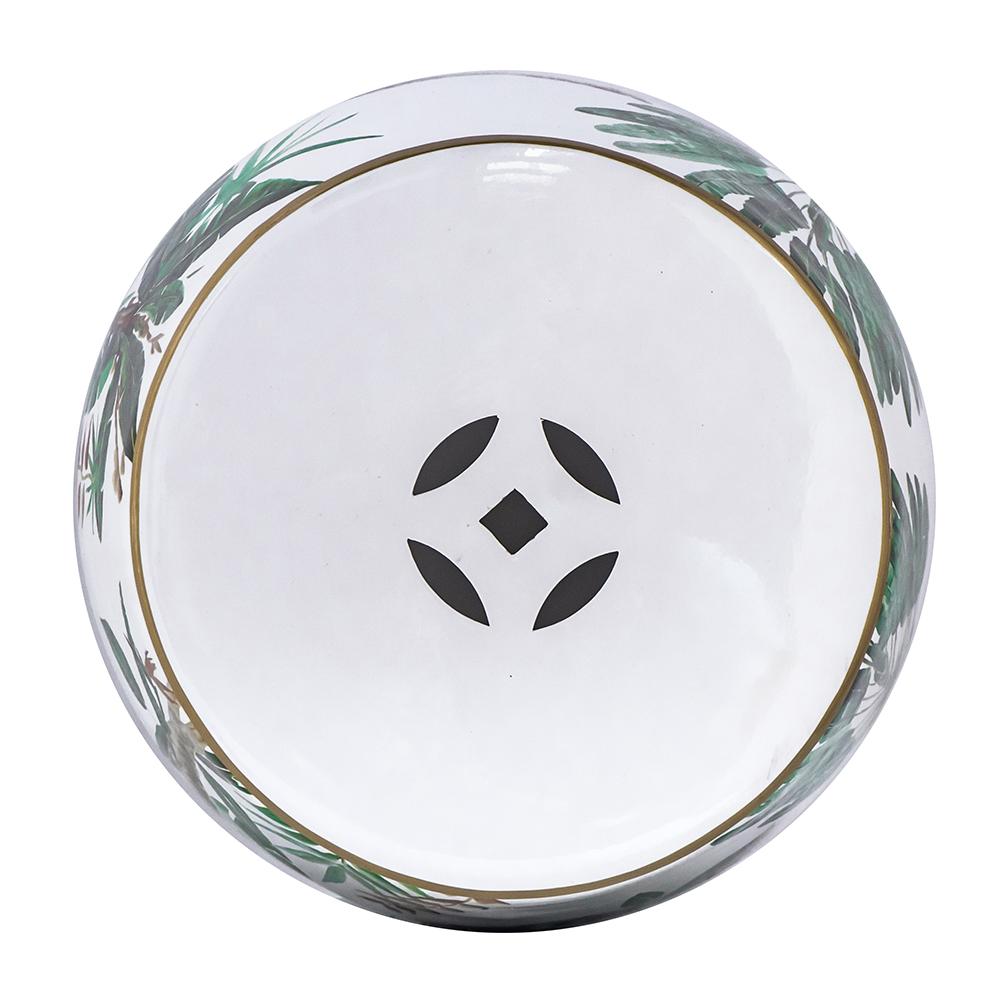 This ceramic stool is a stylish and decorative piece that can enhance any space. Its barrel shape and vibrant design featuring a leopard among jungle foliage make it a unique addition to your home decor. It can be used as a display stand for plants, decorative objects, or coffee table books.