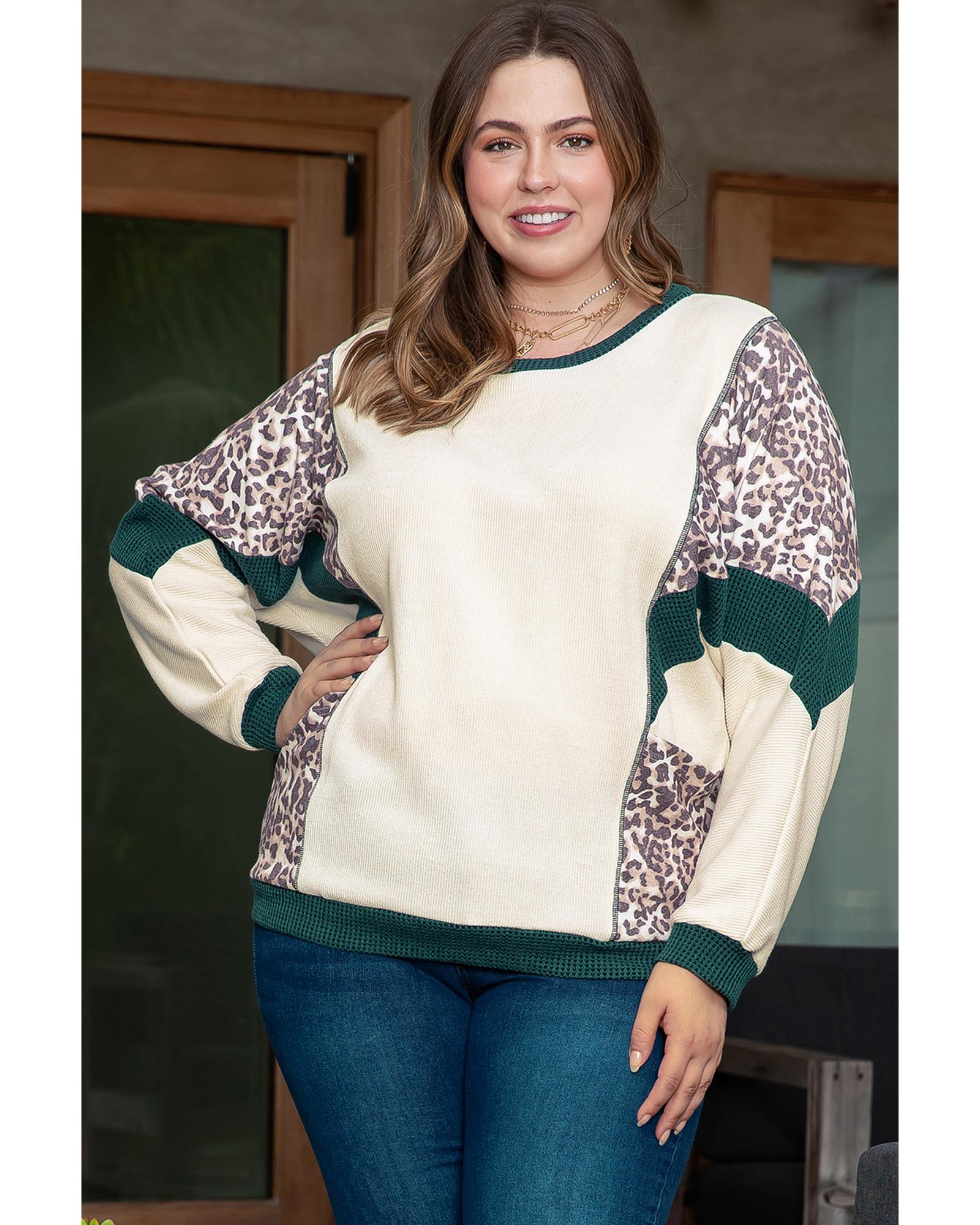 Leopard Colorblock Patchwork Dolman Sleeve Plus Size Top – 2X