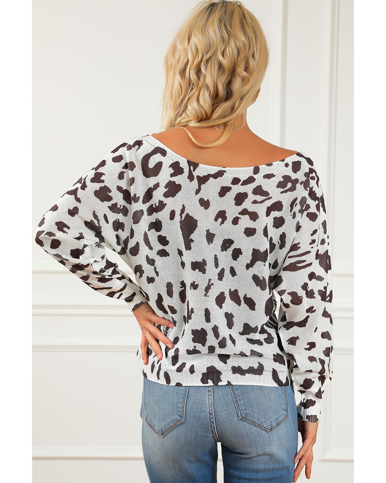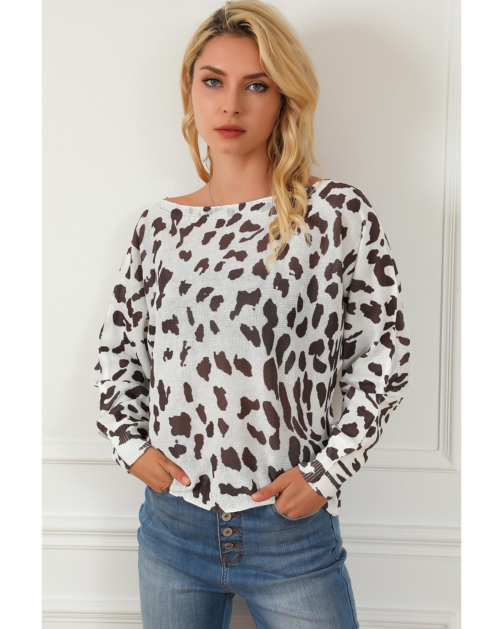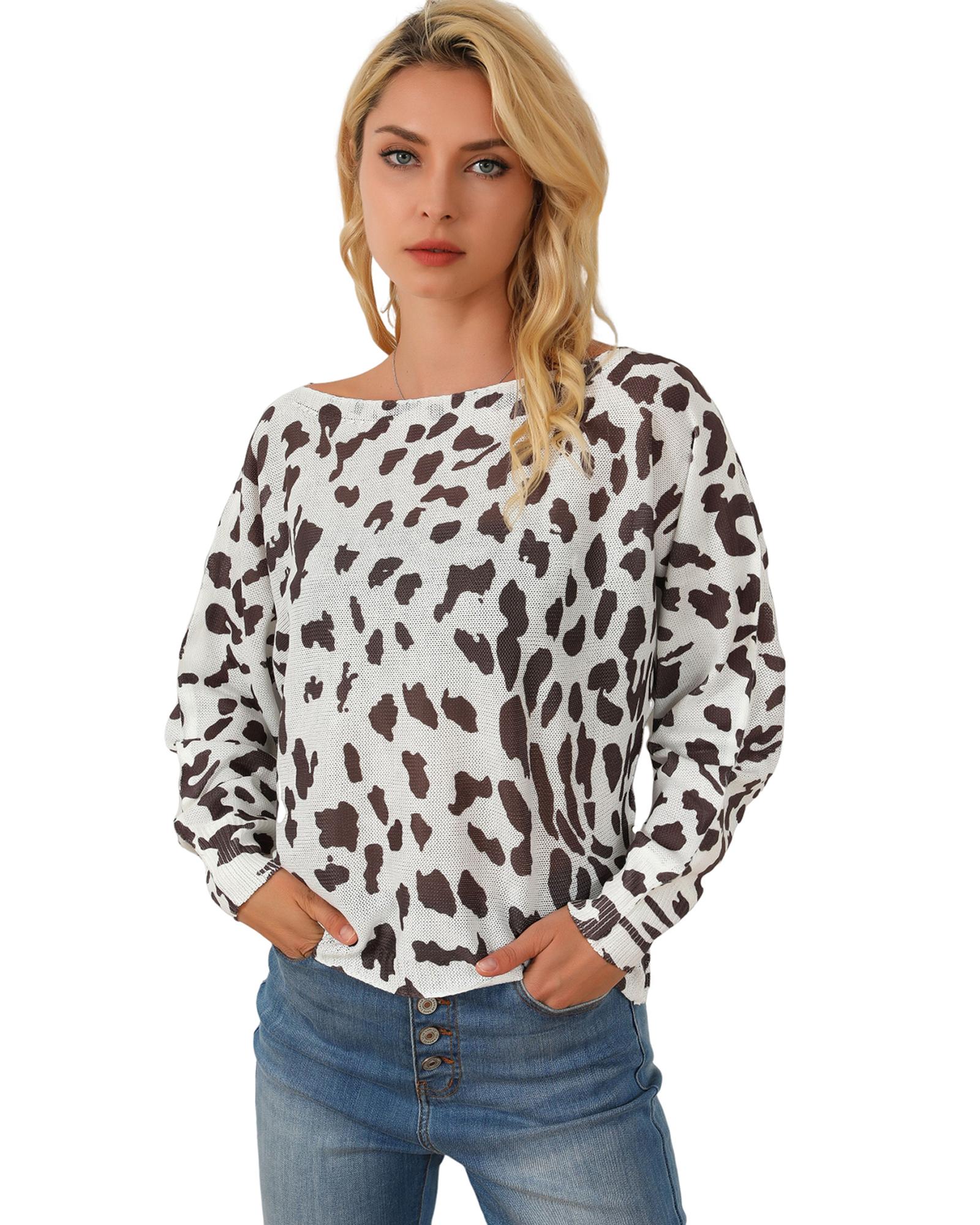 This long sleeve crewneck sweater features a trendy leopard print design combined with a comfortable and versatile fit. Crafted from knit fabric, it offers warmth and coziness, making it suitable for various casual occasions. The boat neck adds a stylish touch, while the loose fit ensures comfort throughout the day.