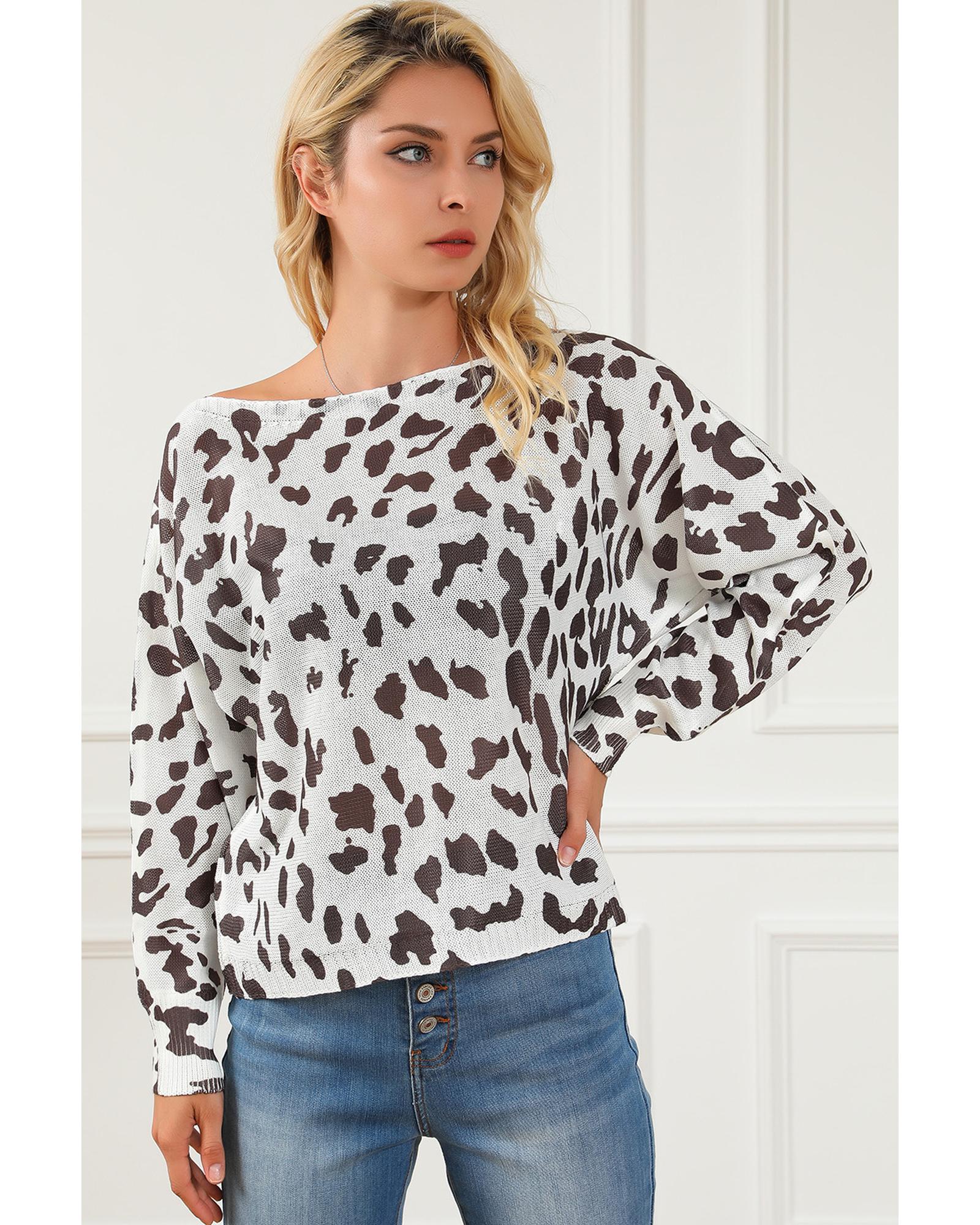 This long sleeve crewneck sweater features a trendy leopard print and a boat neck design, offering a stylish and comfortable option for various occasions. Crafted from knit fabric, it provides warmth and coziness while maintaining a versatile look suitable for different outfits.