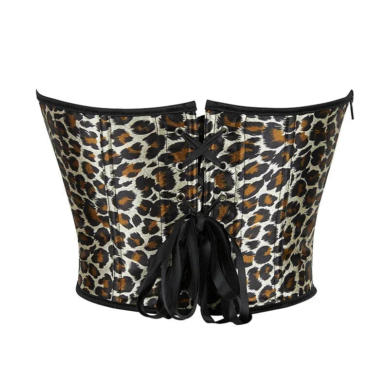 Leopard Print Zip-Up Corset Fishbone Support Plus Size S-Xxl – M