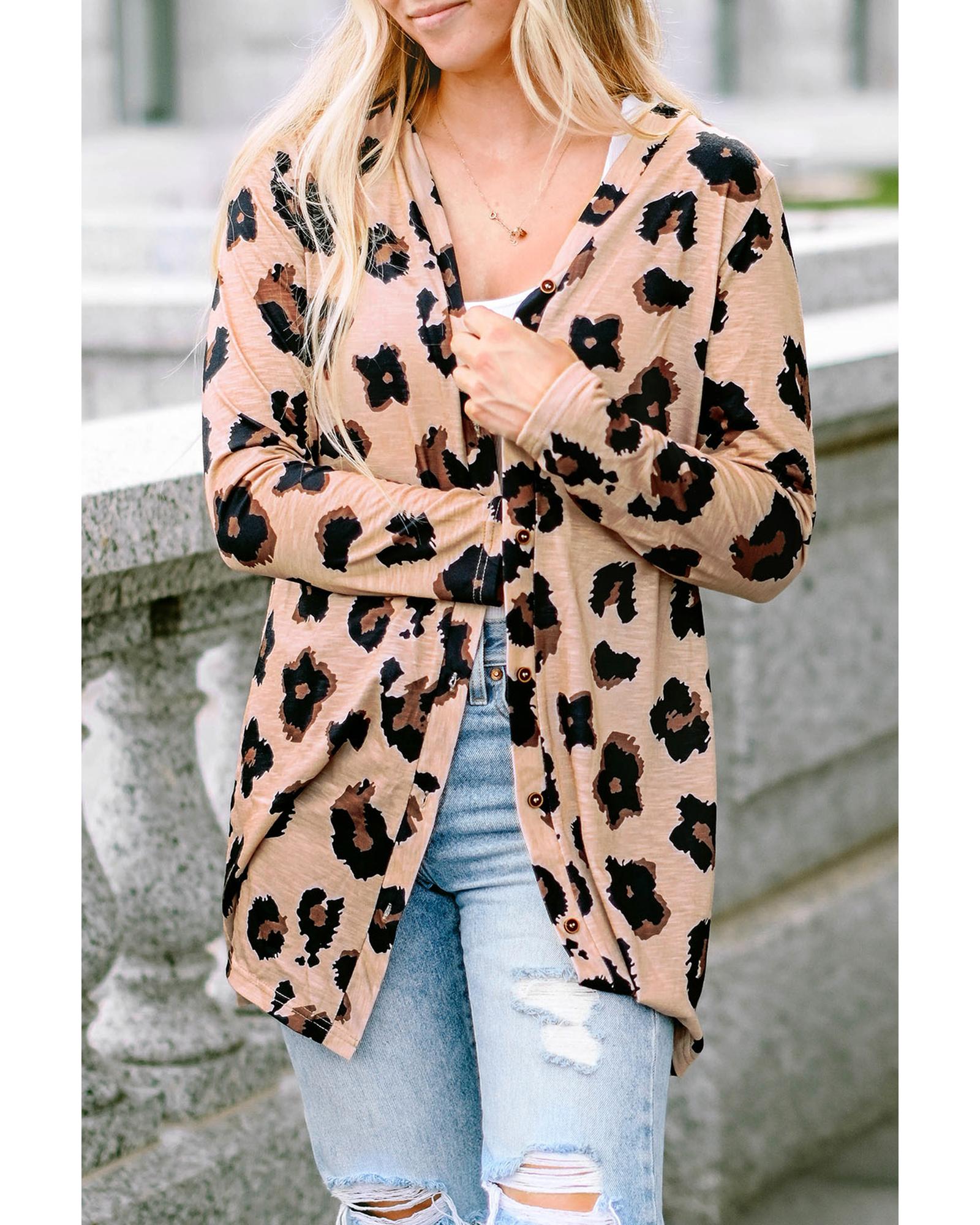 This leopard printed open front cardigan offers a stylish and comfortable addition to your wardrobe. Designed with a trendy fitted look, it provides a soft and skin-friendly fabric that ensures a comfortable wearing experience. Easy to slip on and off, it is perfect for pairing with casual outfits and keeping warm on cooler days.