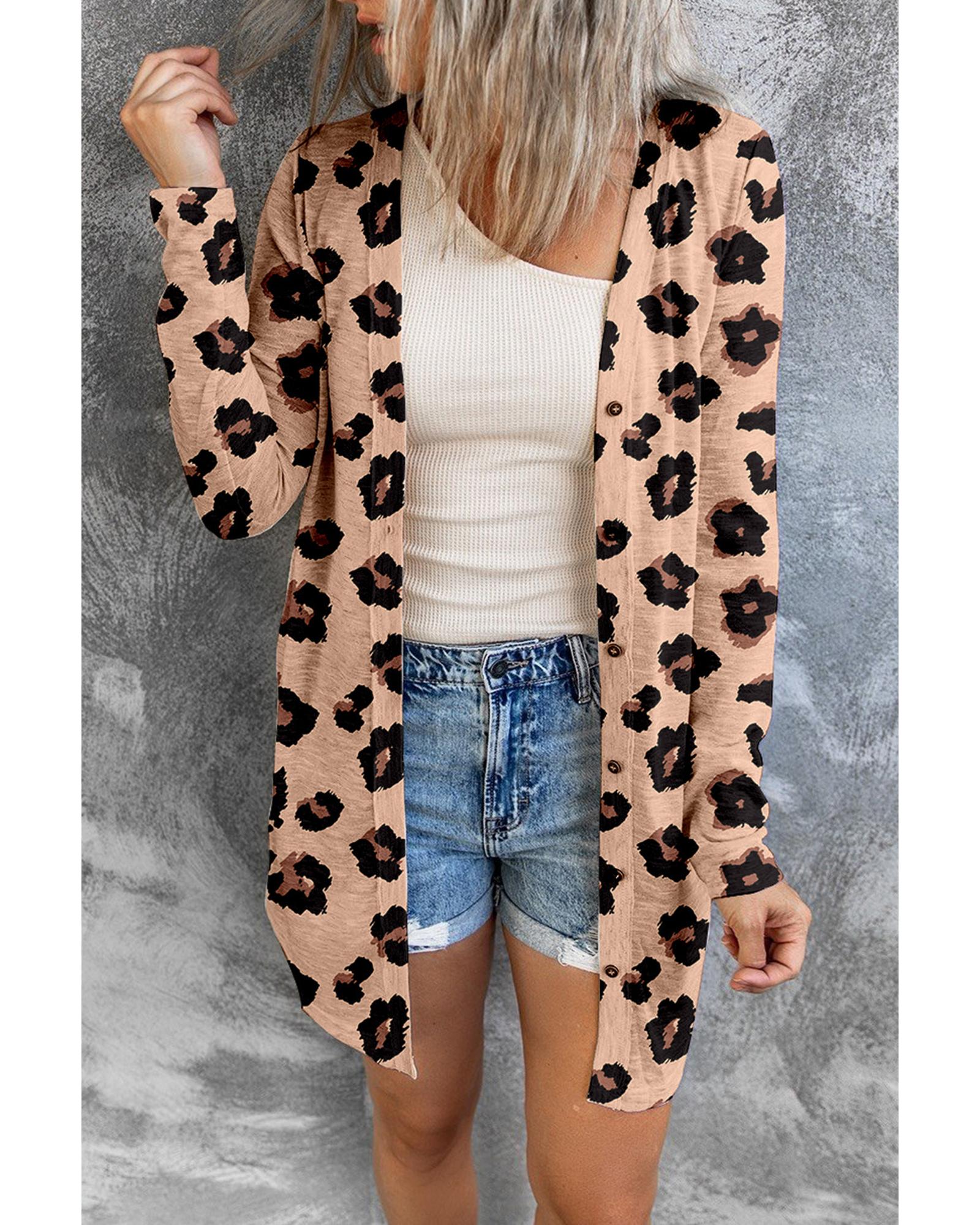 This leopard printed open front cardigan offers a stylish and comfortable addition to your wardrobe. Designed with a trendy fitted look, it is easy to wear and pairs well with casual outfits. Made from soft, skin-friendly fabric, it provides a comfortable wearing experience and keeps you warm on cooler days.