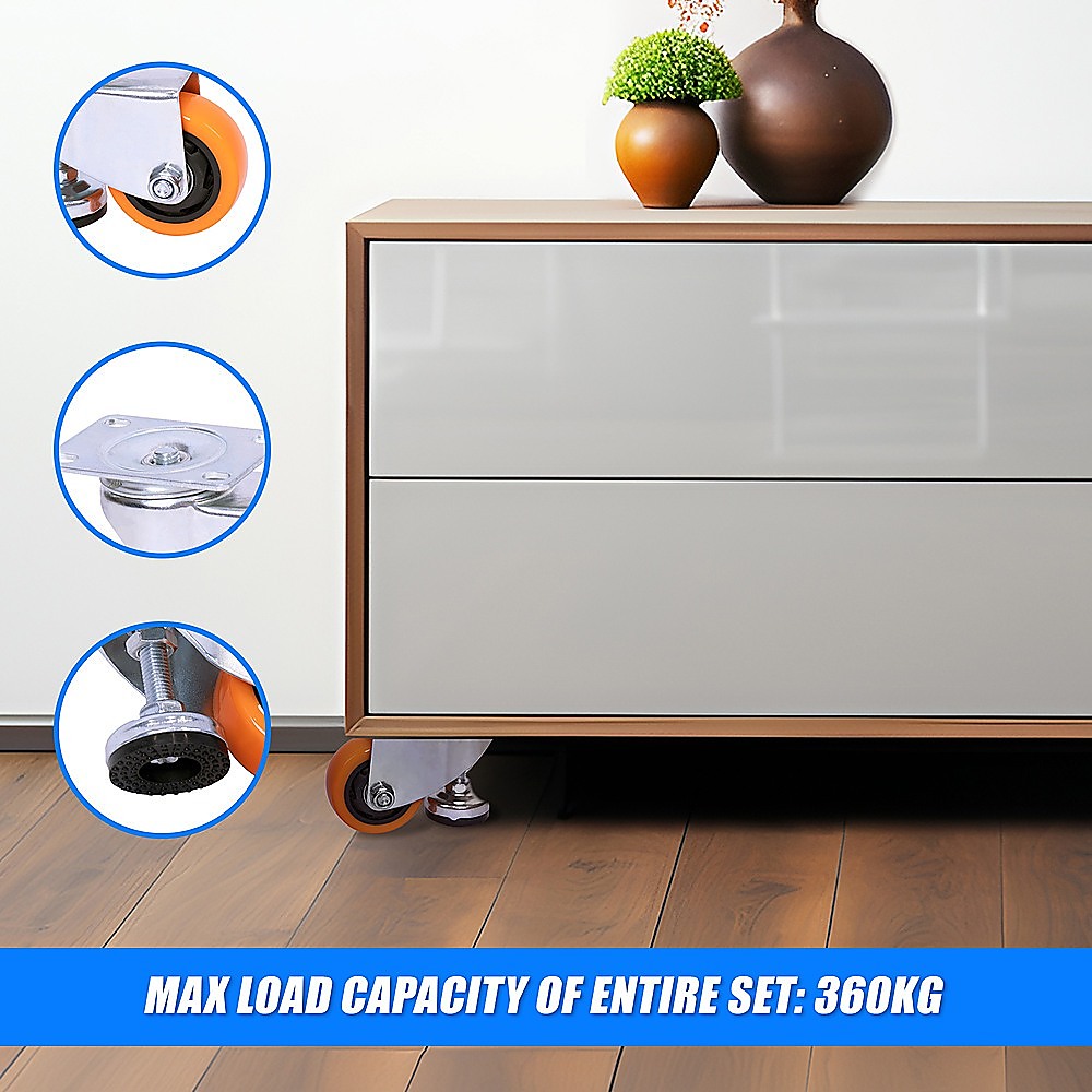 Leveling Casters Swivel Wheels Set of 4, 360 kg Total Load Capacity