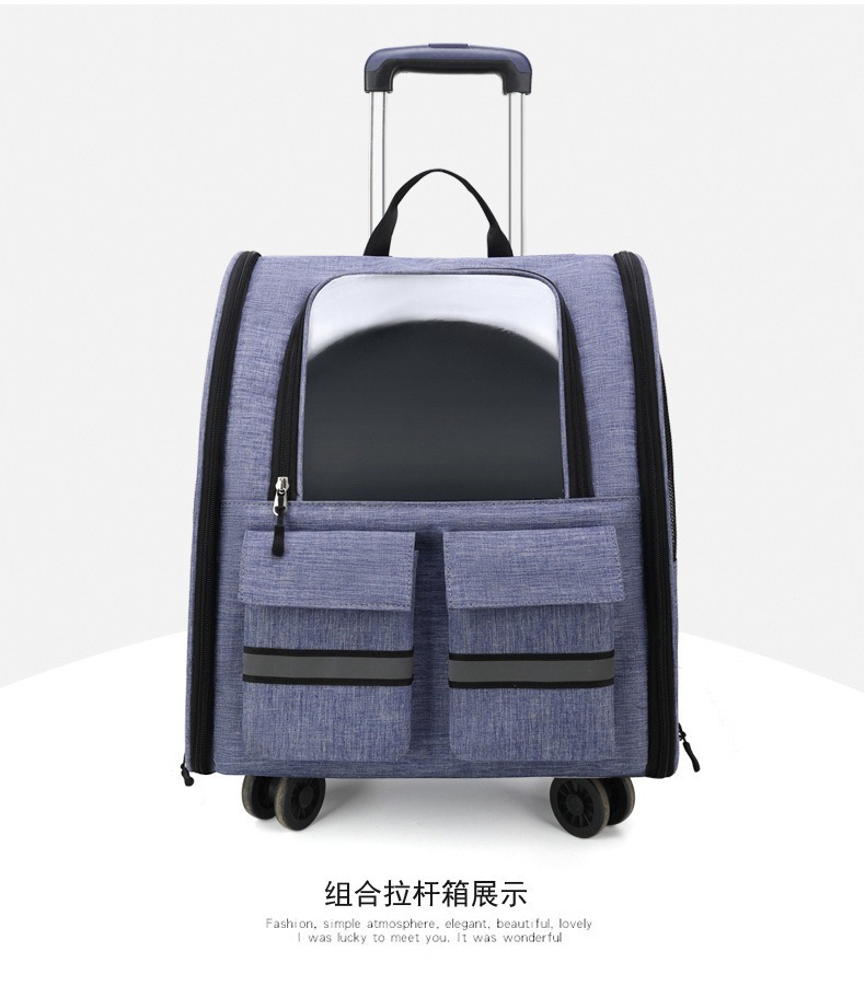 light Blue 3-in-1 Pet Carrier: Rolling Backpack with Collapsible Design