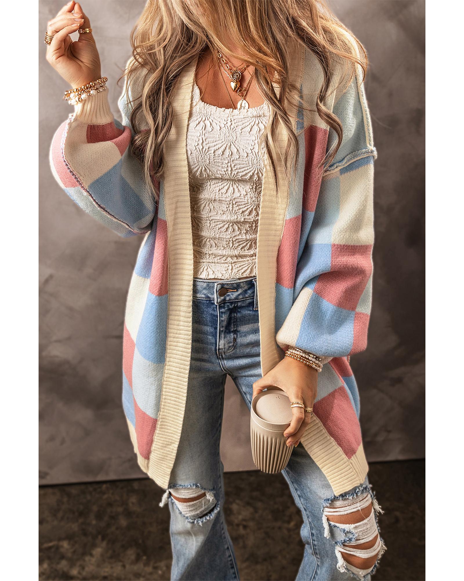 • 1 x Light Blue Checkered Drop Shoulder Cardigan