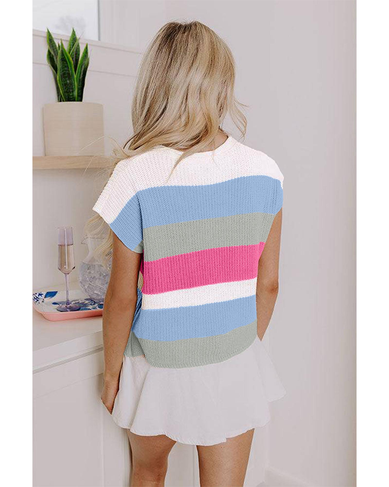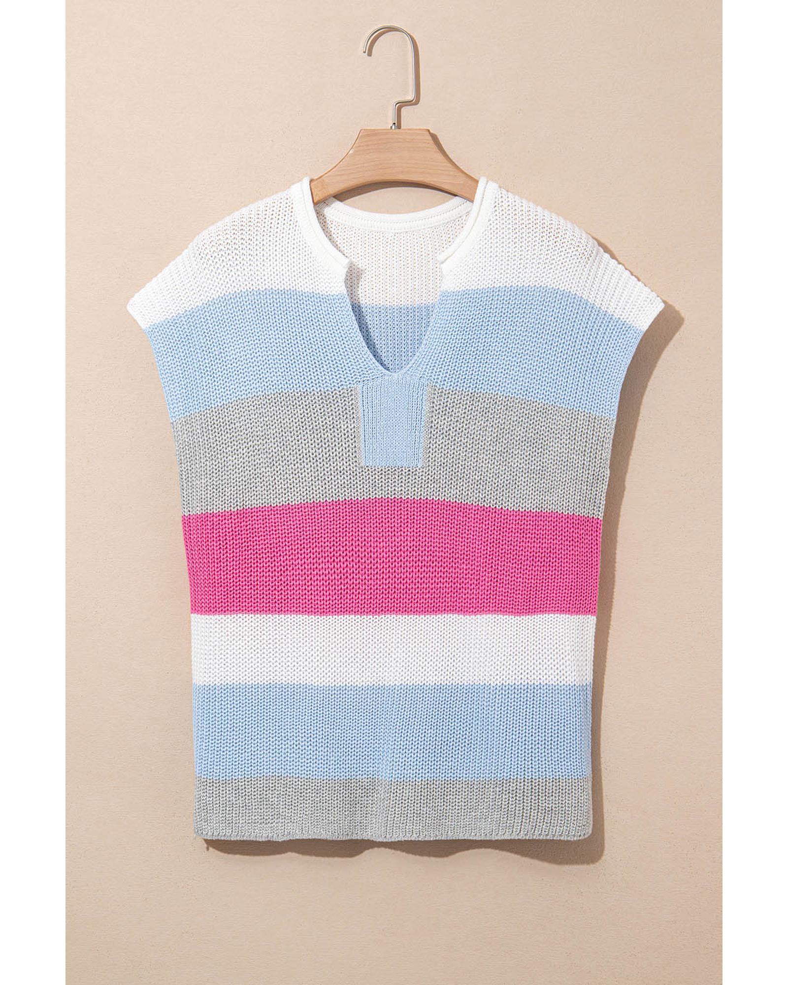 This light blue color block notch V-neck sweater T-shirt offers a stylish and comfortable option for casual wear. Its relaxed fit and soft fabric make it suitable for everyday use, providing both comfort and a flattering appearance.